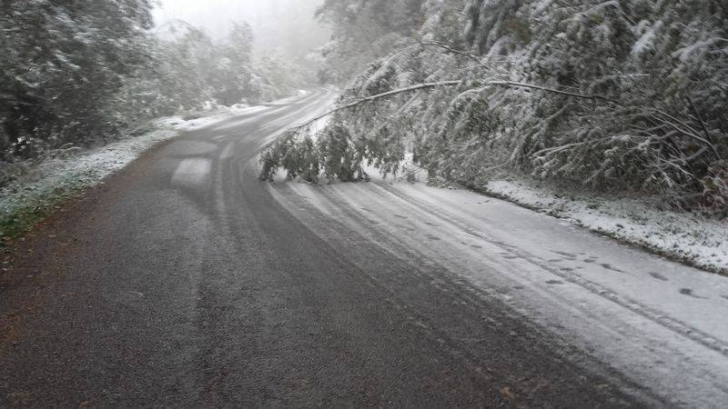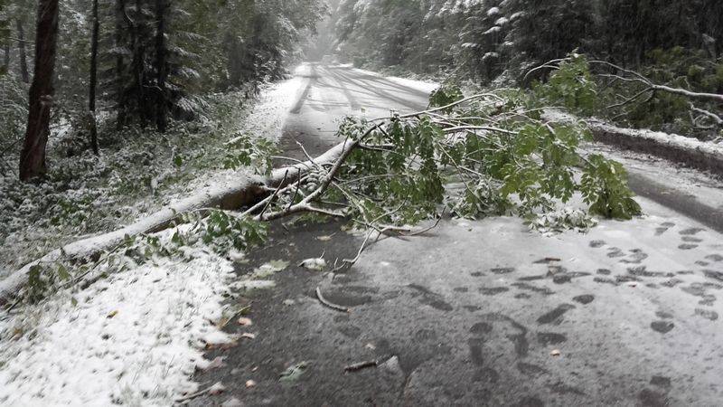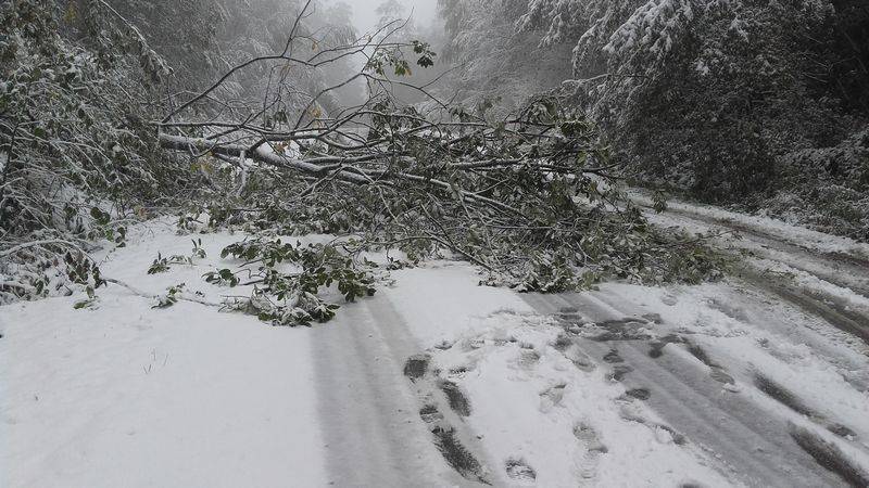 -Kamianna- drzewa powalone na drogę;