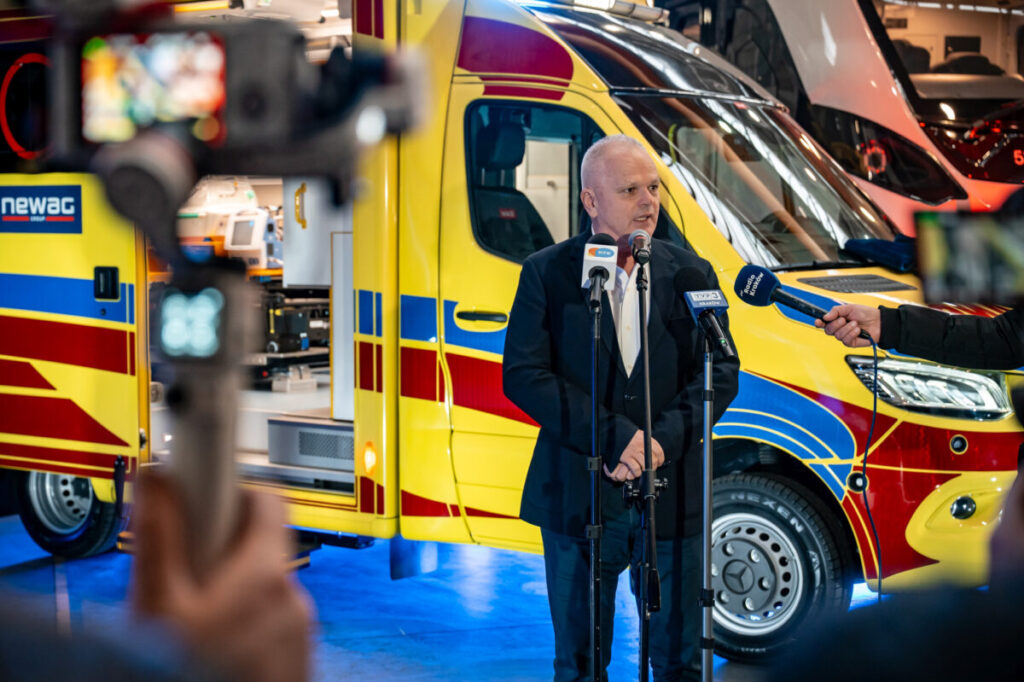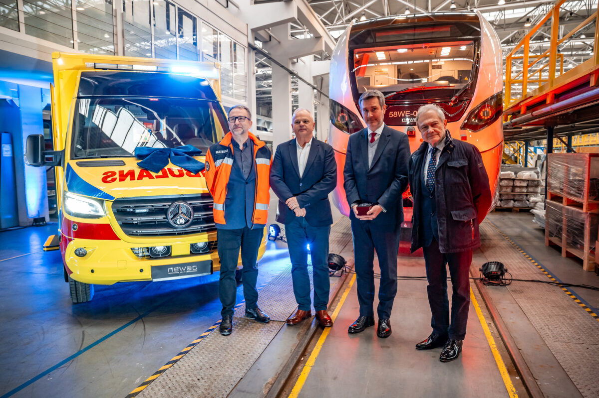 „150 lat istnienia firmy to dla nas zobowiązanie. Od pokoleń budujemy rozwiązania, które służą ludziom – dziś rozumiemy to szerzej niż tylko przez pryzmat transportu. Ta karetka jest wyrazem naszej odpowiedzialności wobec społeczności, w której od półtora wieku funkcjonujemy” – podkreśla Prezes Zarządu NEWAG – Zbigniew Konieczek