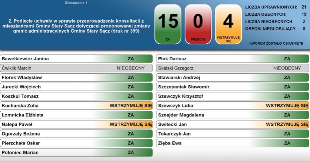 Zmiana granic nie może jednak nastąpić wyłącznie decyzją władz. Konieczne są konsultacje społeczne przeprowadzone zarówno w Nowym, jak i w Starym Sączu a także we wszystkich gminach Powiatu Nowosądeckiego. Radni podkreślają, że choć chodzi o niewielki obszar, sprawa dotyczy publicznych pieniędzy liczonych w dziesiątkach milionów złotych.
