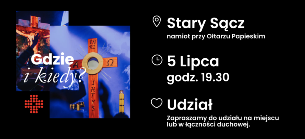 Pod hasłem zaczerpniętym z Pierwszego Listu św. Piotra: „Wy również, niby żywe kamienie, jesteście budowani jako duchowa świątynia…” uczestnicy wydarzenia spotkają się, by – jako jeden Kościół – dziękować za dary Ducha Świętego, dzielić się doświadczeniem wiary oraz wzajemnie się umacniać. Wspólna modlitwa rozpocznie się o 19:30 w namiocie przy Ołtarzu Papieskim w Starym Sączu.