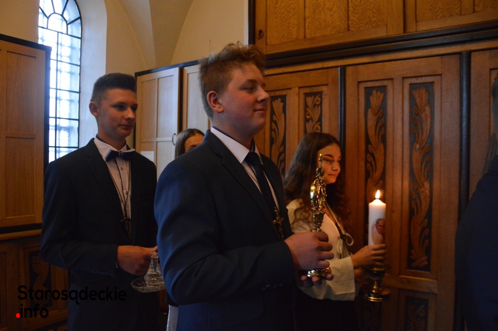 Przed rozpoczęciem Mszy Świętej, przedstawiciele rodziców bierzmowanych przywitali Księdza Biskupa i poprosili o udzielenie sakramentu dojrzałości chrześcijańskiej ich dzieciom. Swoje przygotowania do sakramentu młodzież gimnazjalna rozpoczęła kilka miesięcy wcześniej pod kierunkiem swoich katechetów.