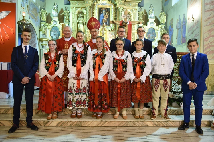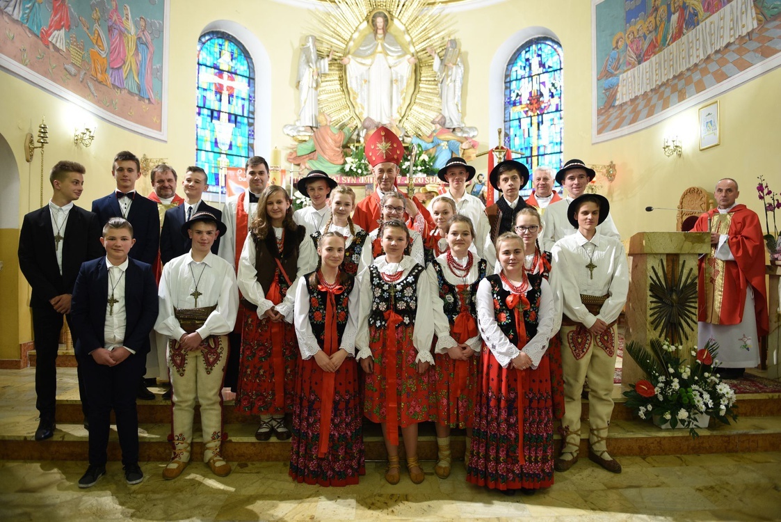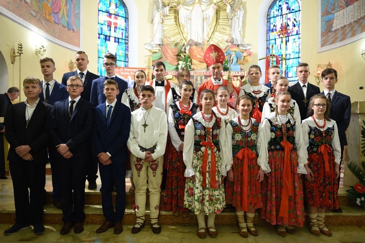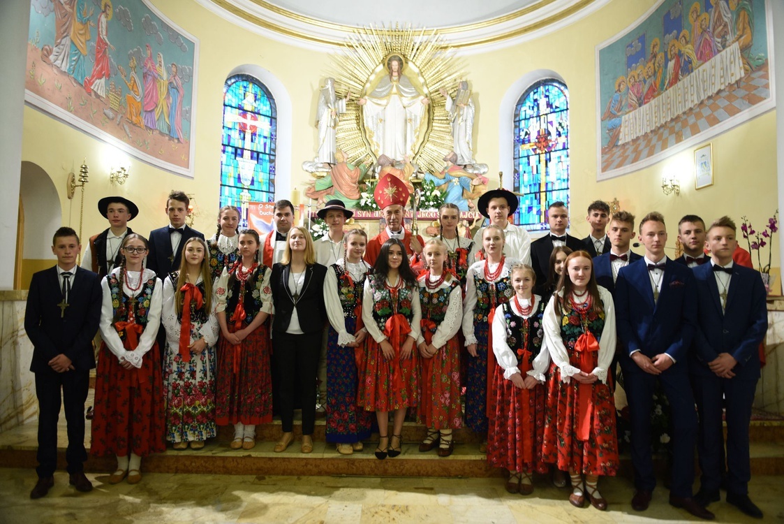W homilii biskup podkreślił, że Duch Święty jest Strażnikiem nadziei w sercach ludzi wierzących. – Jako bierzmowani w szczególny sposób jesteście wezwani, by tę nadzieję uzasadniać swoim postępowaniem. Musicie jednak być mocni w wierze pogłębianej przez lekturę Pisma świętego i przez zjednoczenie z Jezusem w Eucharystii. Waszą nauczycielką może być w tym względzie bł. s. Celestyna Faron. Urodzona w Zabrzeży, ochrzczona w kościele parafialnym w Łącku, przez wiele lat mieszkająca w Kamienicy, w ciągu 15 miesięcy uwięzienia w obozie koncentracyjnym dawała heroiczne świadectwo chrześcijańskiej nadziei, która wyrażała się w jej ufności pokładanej w Bogu, w miłości wobec innych więźniów, w pewności, że Jezus, któremu ofiarowała dziewięć pierwszych piątków, jej nie opuści i przyjdzie do niej przy końcu życia w konsekrowanej Hostii. I zdarzyło się, że do obozu trafił kapłan, który przeniósł w ukryciu Najświętszy Sakrament. Cząstkę Ciała Pańskiego otrzymała w Komunii św. s. Celestyna i tak spełniło się jej pragnienie zjednoczenia z Jezusem, które ostatecznie zaowocowało świętością potwierdzoną przez Kościół w akcie beatyfikacji. Od s. Celestyny możecie się uczyć wytrwałej nadziei jako tęsknoty i oczekiwania na Boga, którą można i trzeba wypełnić szlachetnymi czynami prawdy, dobra i piękna – mówił bp Salaterski.