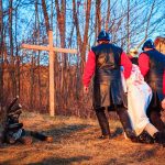 Jak co roku przedstawienie rozpoczęło się pod plebanią, gdzie ogromnej liczbie widzów ukazane zostały następujące sceny: spisek Najwyższej Rady Żydowskiej przeciw Mesjaszowi, kuszenie Judasza, Ostatnia Wieczerza, pełne emocji spotkanie Zbawiciela z Matką, modlitwa w Ogrodzie Oliwnym i pojmanie oraz sąd Piłata. Następnie wszyscy udali się w Drodze Krzyżowej na miejsce ukrzyżowania – górę pod Wdżarami.