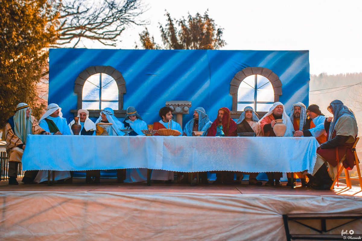 Jak co roku przedstawienie rozpoczęło się pod plebanią, gdzie ogromnej liczbie widzów ukazane zostały następujące sceny: spisek Najwyższej Rady Żydowskiej przeciw Mesjaszowi, kuszenie Judasza, Ostatnia Wieczerza, pełne emocji spotkanie Zbawiciela z Matką, modlitwa w Ogrodzie Oliwnym i pojmanie oraz sąd Piłata. Następnie wszyscy udali się w Drodze Krzyżowej na miejsce ukrzyżowania – górę pod Wdżarami.