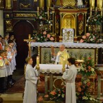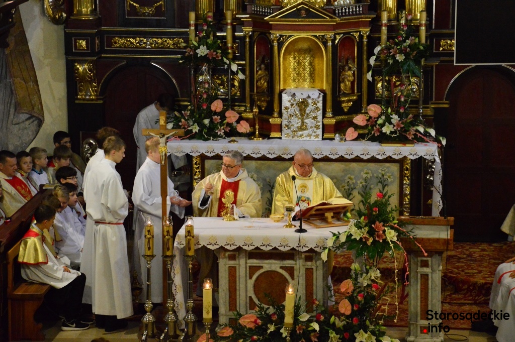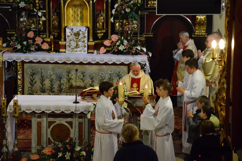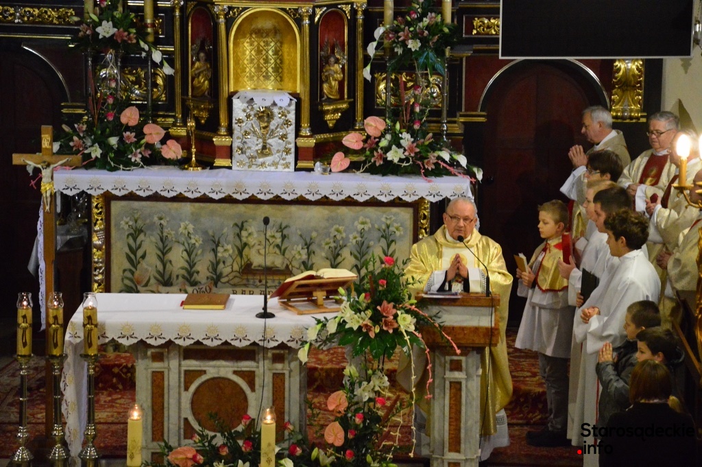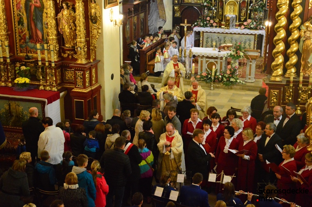 Na zakończenie Eucharystii ks proboszcz Marek Tabor podziękował ks prałatowi Szabli za przewodnictwo we Mszy św i homilię, chórowi i orkiestrze pod dyrekcją Stanisława Dąbrowskiego za trud w przygotowaniu oprawy liturgicznej, siostrze Annie, która z wielkim artyzmem stroi ołtarze, służbie liturgicznej, panu organiście, wszystkim darczyńcom i kapłanom.
