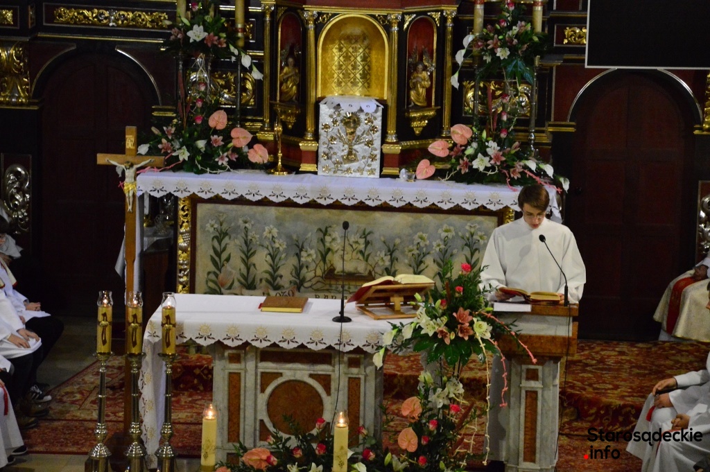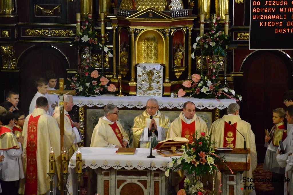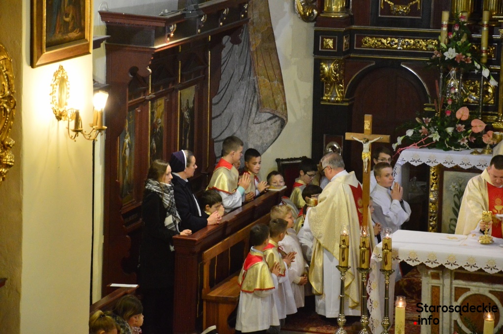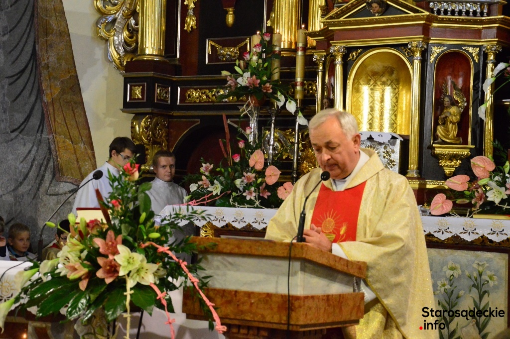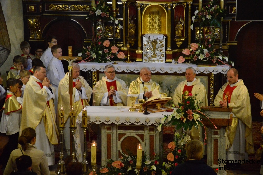 Na zakończenie Eucharystii ks proboszcz Marek Tabor podziękował ks prałatowi Szabli za przewodnictwo we Mszy św i homilię, chórowi i orkiestrze pod dyrekcją Stanisława Dąbrowskiego za trud w przygotowaniu oprawy liturgicznej, siostrze Annie, która z wielkim artyzmem stroi ołtarze, służbie liturgicznej, panu organiście, wszystkim darczyńcom i kapłanom.