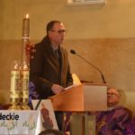 –Nasz dzisiejszy przyjazd, z drugiego krańca Polski dowodzi o naszym szacunku do śp. księdza Prałata -dodał starosta powiatu bartoszyckiego –zapamiętałem go jako człowieka skromnego, życzliwego i uśmiechniętego. Żegnam Cię Księże Prałacie w imieniu samorządu miasta i powiatu bartoszyckiego i dziękuję za wieloletnią służbę Bożą. Dobrze spełniłeś swoje kapłańskie powołanie.