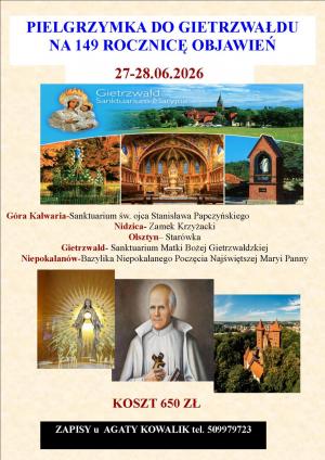 Wyjazd 27.06.2026 o godz. 2.00 spod Kościoła Parafialnego od strony ul. Sobieskiego