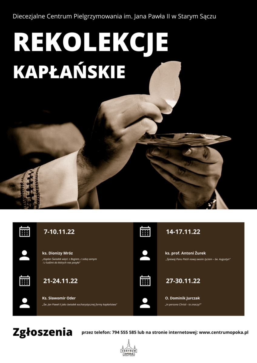 Istnieje możliwość zapisów na rekolekcje kapłańskie w Domu rekolekcyjnym „Opoka” w Starym Sączu. Rekolekcje odbywają się w następujących terminach: