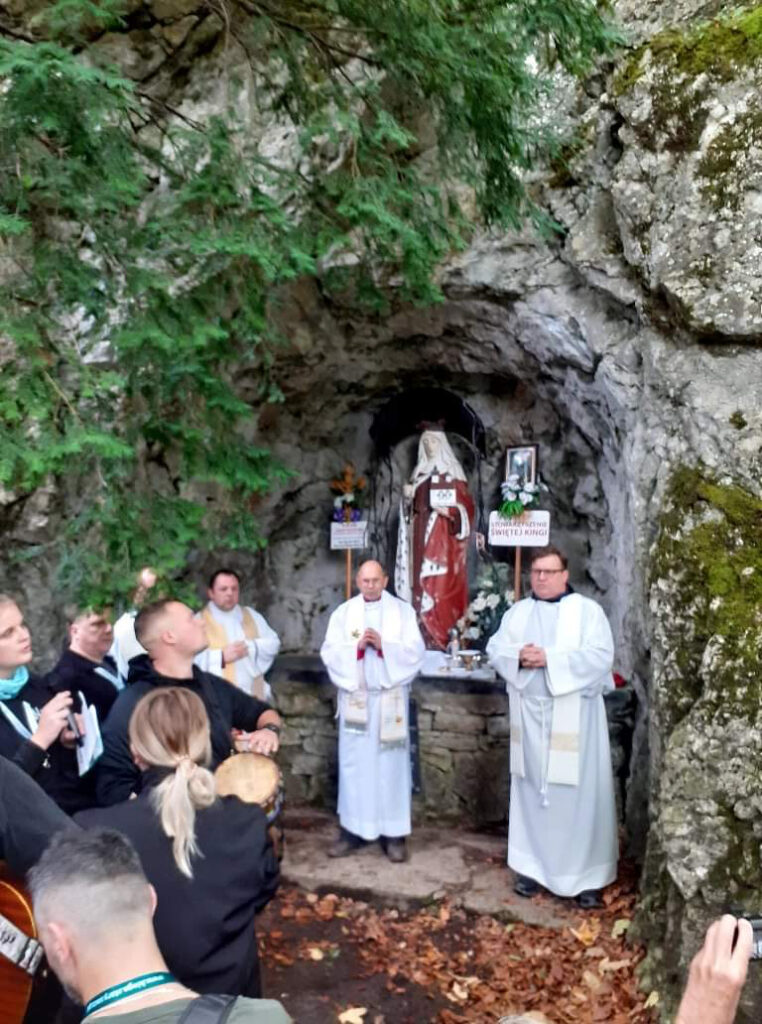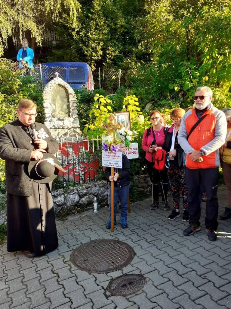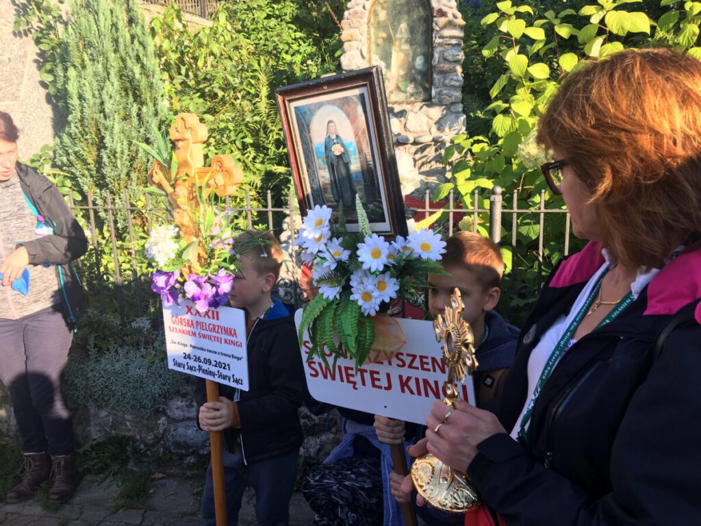 Drugi dzień XXXII Górskiej Pielgrzymki rozpoczął się Mszą Św. o godz. 6,30 w starosądeckim Klasztorze, gdzie ksiądz proboszcz Tomasz Kudroń z parafii pw Św. Wojciecha w Szczawnicy odebrał relikwiarz z relikwiami Św. Kingi.