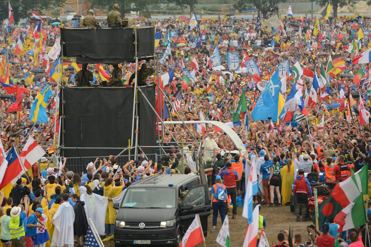 – Dziś wszyscy przeżywamy tutaj święto wiary. W ojczyźnie Jana Pawła II chciałbym mu podziękować za to, że dał impuls do tych spotkań. Towarzyszy nam z nieba, gdy widzimy tylu młodych ludzi z różnych kultur, zgromadzonych by świętować żywą obecność Jezusa pośród nas – zwrócił się do młodzieży z całego świata Ojciec Święty.