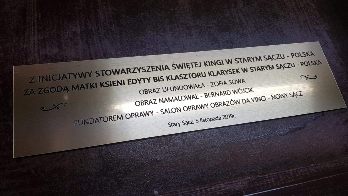 W dniu wczorajszym (4 listopada 2019) w Klasztorze Sióstr Klarysek w Starym Sączu Ksiądz Kapelan Stanisław Śliwa w obecności Matki Ksieni Edyty Bis poświęcił obraz Świętej Kingi, obraz Świętego Jana Pawła II oraz jeden z czterech ornatów. Obrazy trafią do nowo wybudowanego kościoła na Ukrainie.