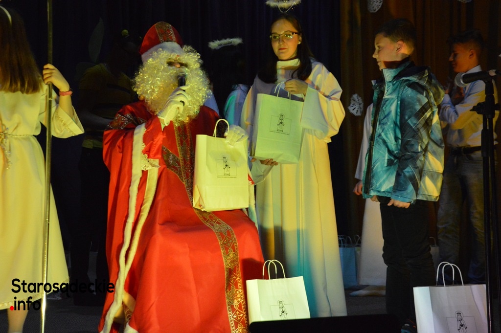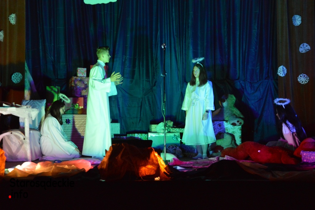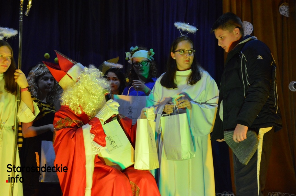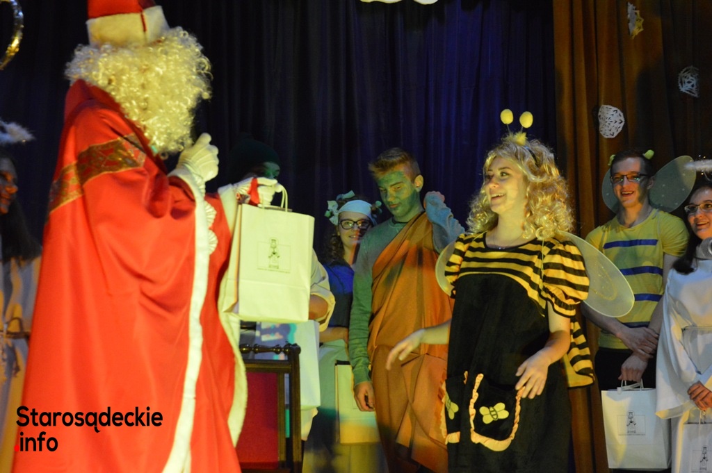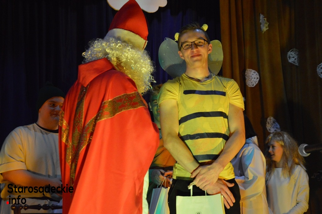 Wcześniej młodzież przygotowała niezwykły spektakl -„przegląd wszystkich bajek” dla najmłodszych. Ogromne brawa za zaangażowanie i niebanalny pomysł.  W atmosferze radości i wielkiego oczekiwania wszyscy otrzymali prezenty. Była to też okazja do zaprezentowania się grup oraz wspólnego śpiewu.