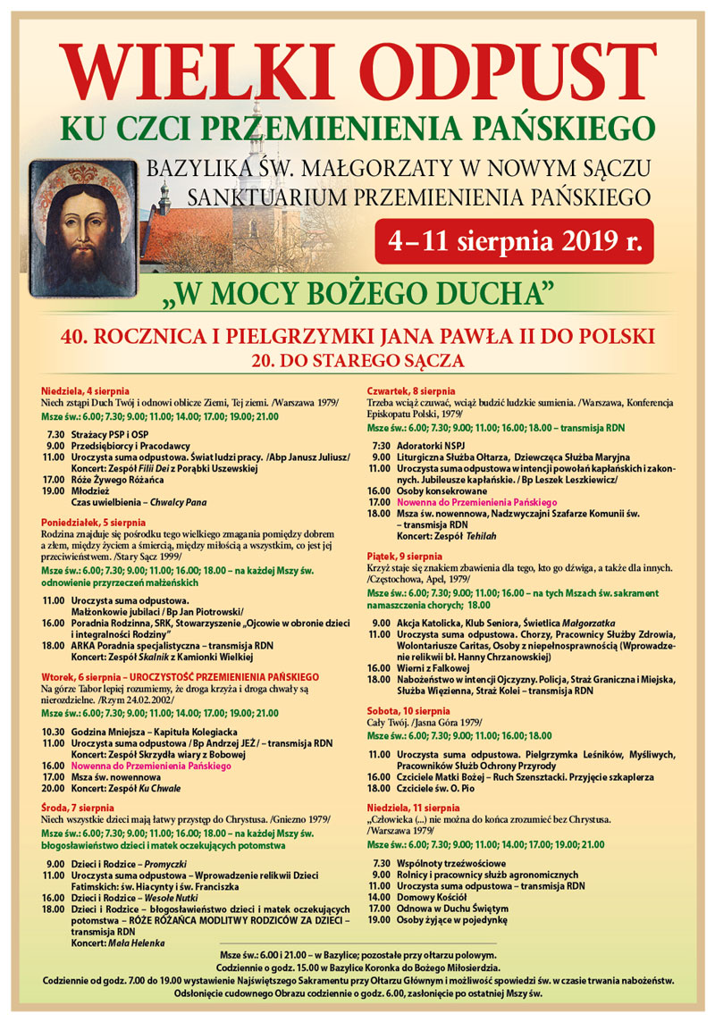 Proboszcz i kustosz ks. Jerzy Jurkiewicz zaprasza na uroczystości. Odpust potrwa do 11 sierpnia. Do Nowego Sącza przybędą m.in. duchowni, siostry zakonne, strażacy, policjanci, chorzy, małżeństwa, młodzież i dzieci a także rolnicy.
