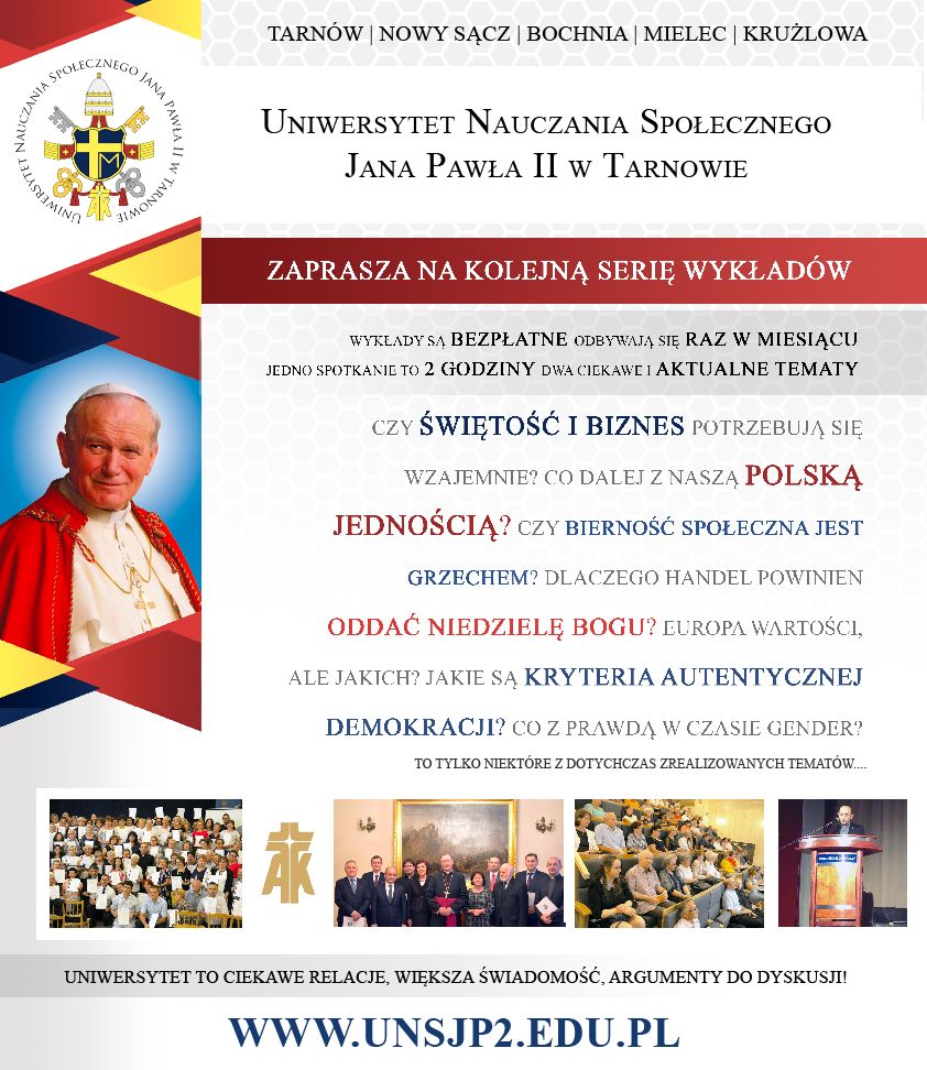 Do udziału w wykładach zachęca diecezjan biskup tarnowski Andrzej Jeż. Zapisy prowadzone są przez stronę internetową Uniwersytetu i potrwają do 5 września. Szczegóły są na stronie internetowej http://unsjp2.edu.pl/