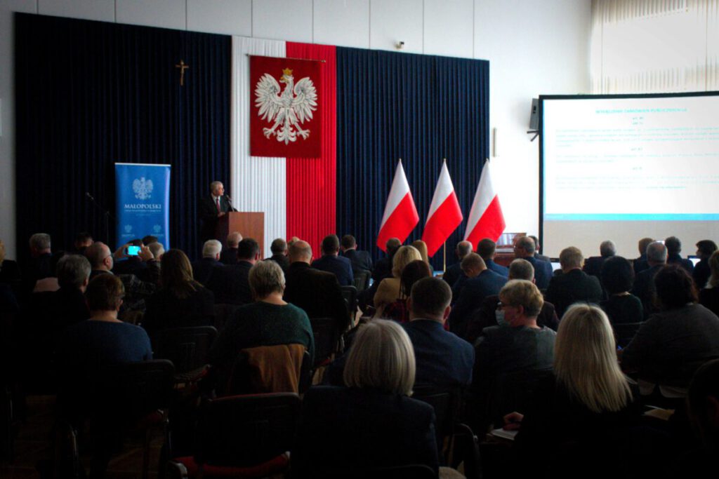 Po spotkaniu z samorządowcami odbył się briefing prasowy.Chcę bardzo podziękować za ciężką pracę 24 godziny na dobę, którą wykonuje teraz wojewoda i cała ekipa województwa małopolskiego. Dziękuję za możliwość uczestnictwa w tym posiedzeniu, które było bardzo owocne i w czasie którego omówiliśmy najważniejsze sprawy dotyczące ustawy odnośnie do uchodźców z Ukrainy – zaznaczył konsul Wiaczesław Wojnarowski.