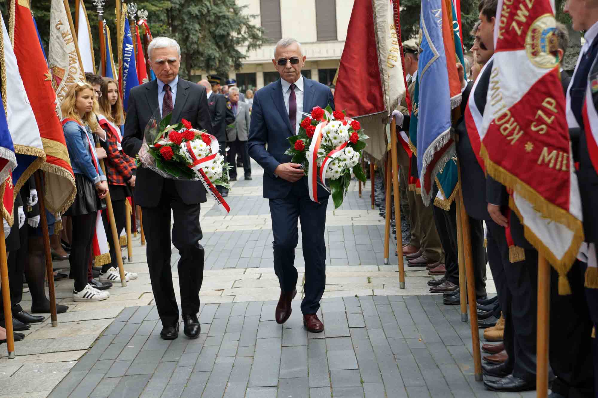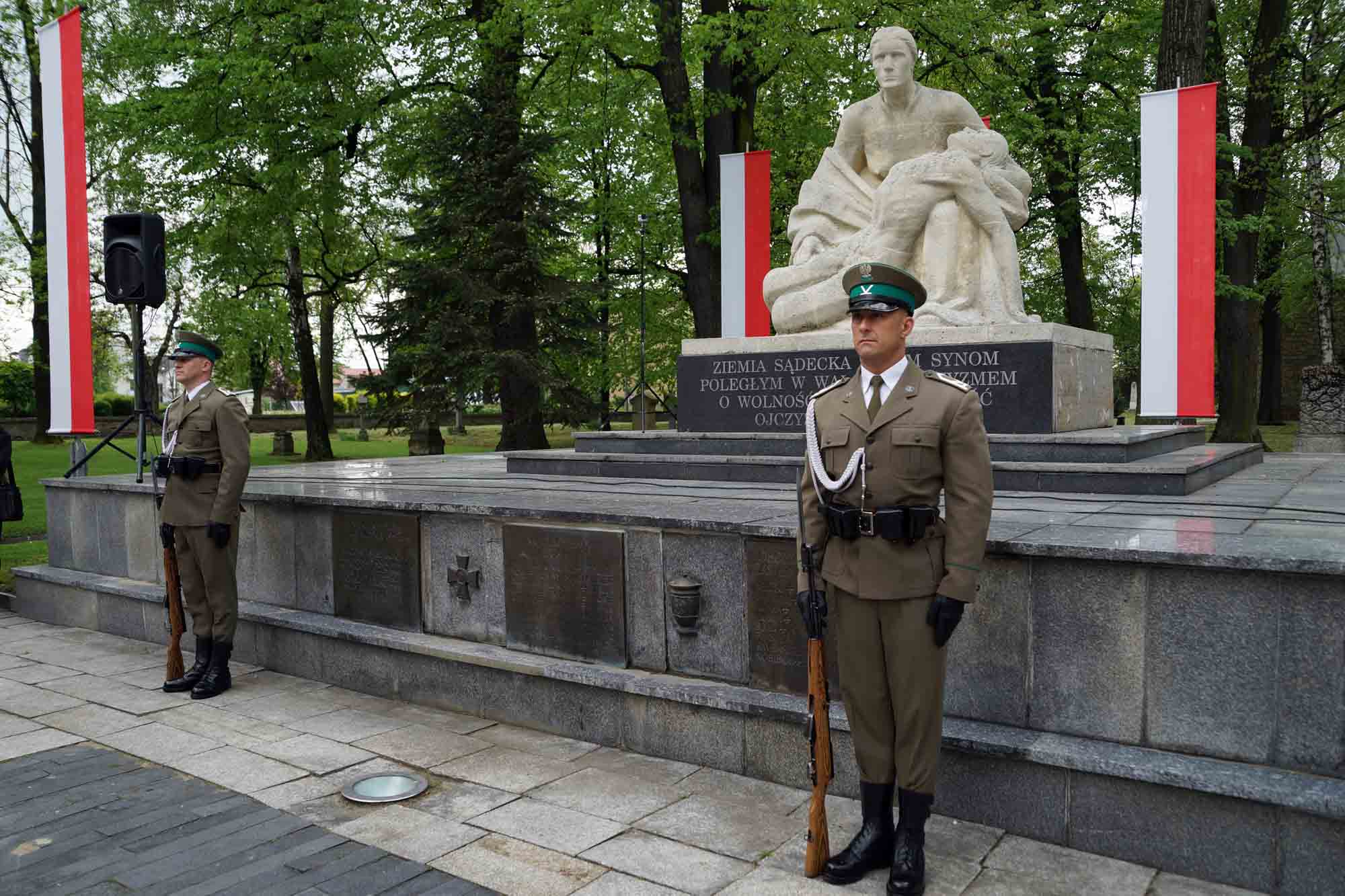 W uroczystych obchodach 71. rocznicy zakończenia II wojny światowej wzięły udział poczty sztandatrowe służb mundurowych, organizacji kombatanckich i sądeckich szkół. Obecni byli posłowie PiS Jan Duda i Piotr Naimski. Władze miasta reprezentowali wiceprezydent Nowego Sącza Jerzy Gwiżdż i przewodnicząca Rady Miasta Bożena Jawor.