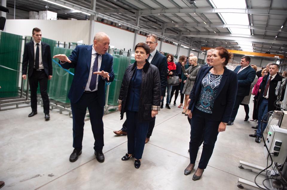 Potem Beata Szydło odwiedziła firmę Fakro, gdzie spotkała się z pracownikami i właścicielem Ryszardem Florkiem, który oprowadził premier po halach produkcyjnych.
