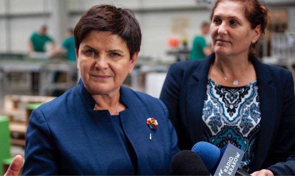Beata Szydło z wizytą w Nowym Sączu. Odwiedziła FAKRO i udzieliła poparcia Iwonie Mularczyk
