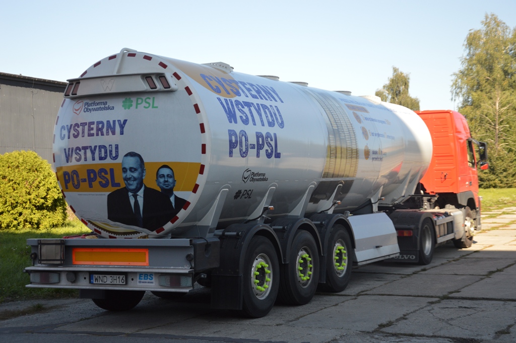 „Cysterna wstydu PO-PSL” dotarła do Nowego Sącza. Ciężarówka ma symbolizować ośmioletnie straty budżetu państwa poniesione w wyniku nielegalnego obrotu paliwem. Ideę akcji zorganizowanej przez Prawo i Sprawiedliwość tłumaczył poseł Wiesław Janczyk i posłanka Anna Paluch.