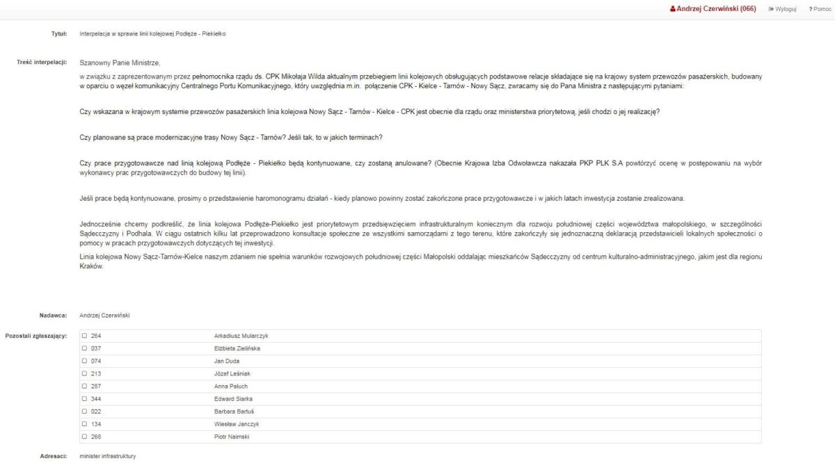 Wicemarszałek Leszek Zegzda, jak i poseł Andrzej Czerwiński oczekują od posłów PiS, aby jednoznacznie określili, czy godzą się na degradację komunikacyjną Sądecczyzny. Czerwiński złożył już interpelację do Ministra Infrastruktury z zapytaniem, co będzie z linią Podłęże-Piekiełko.
