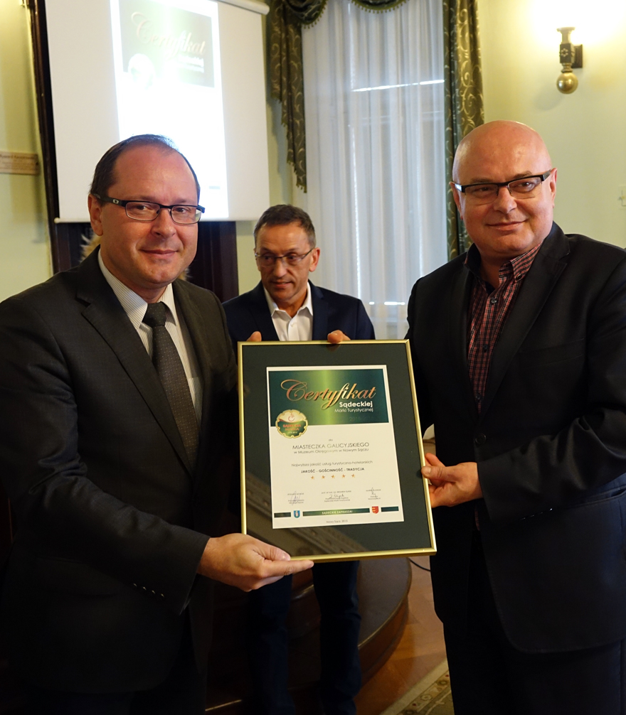 Dzisiaj w sądeckim ratuszu odbyła się uroczystość wręczenia certyfikatów Sądeckiej Marki Turystycznej. Po raz pierwszy Certyfikat Sądeckiej Marki Turystycznej otrzymało Miasteczko Galicyjskie w Muzeum Okręgowym w Nowym Sączu. Sześć podmiotów związanych z branżą turystyczną przeszło ponowną weryfikację i otrzymało przedłużenie certyfikatu na trzy lata.