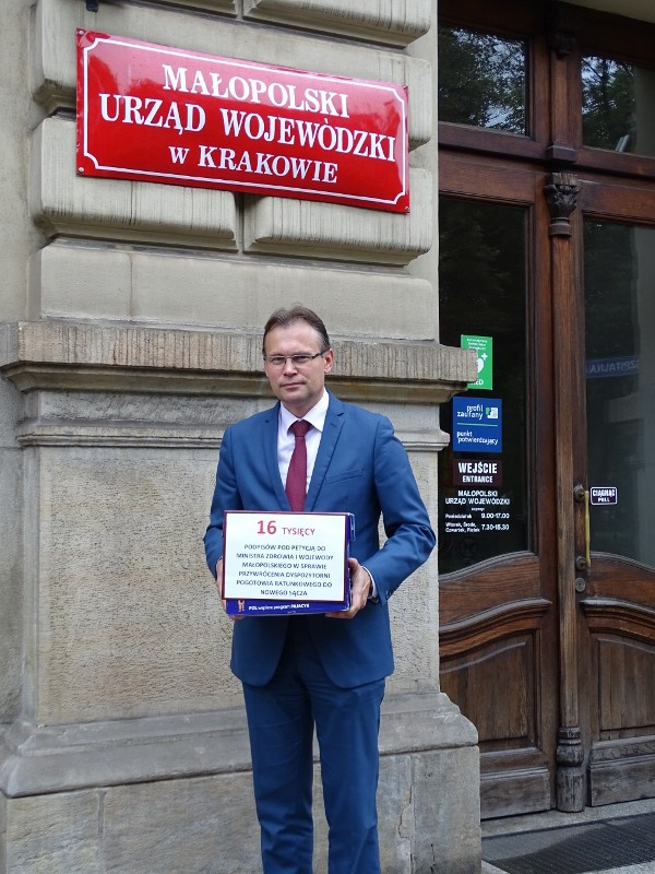 –Pan Wojewoda nie chciał przyjąć podpisów do rąk własnych, więc Poseł Arkadiusz Mularczyk zostawił je na biurku. Wojewoda Małopolski nadal pozostaje głuchy na jakiekolwiek argumenty w tej sprawie i twierdzi, że powstanie dyspozytorni w Nowym Sączu to likwidacja 10 karetek –mówi naszemu portalowi Iwona Sus z biura poselskiego Mularczyka.