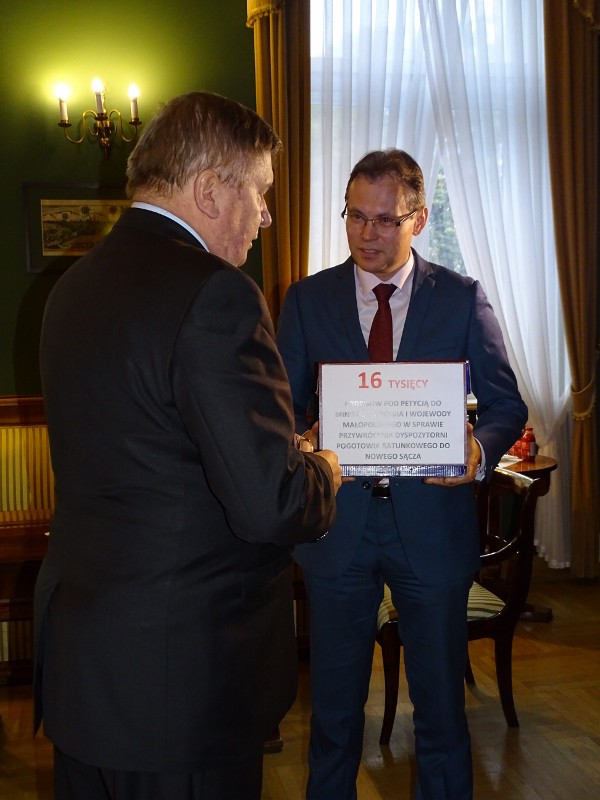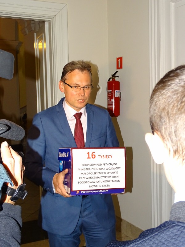 Wczoraj poseł Arkadiusz Mularczyk przekazał na ręce, a raczej na biurko Wojewody Małopolskiego blisko 17 tysięcy podpisów za przywróceniem sądeckiej dyspozytorni.