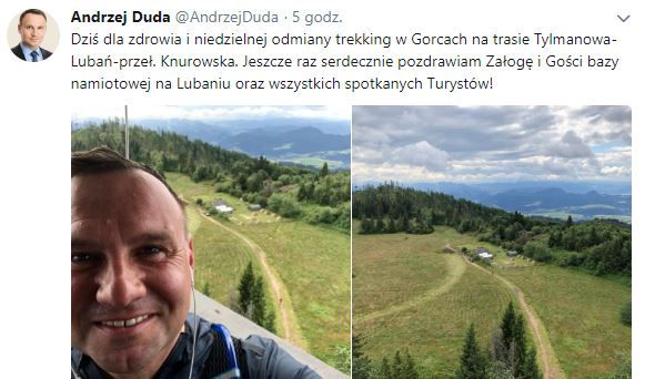 Prezydent jest znany ze swojego zamiłowania do gór. Andrzej Duda postanowił więc spędzić wolną niedzielę aktywnie „dla zdrowia i odmiany trekkingowo”.