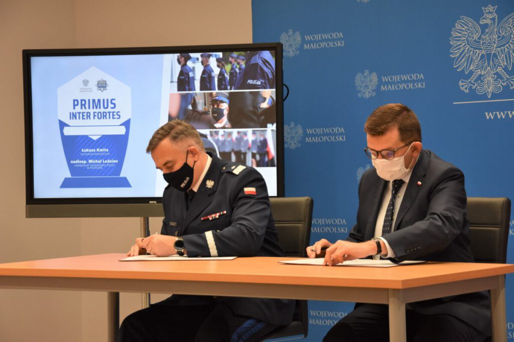 Wojewoda małopolski Łukasz Kmita i komendant wojewódzki Policji w Krakowie nadinsp. Michał Ledzion zdecydowali, że policjanci, którzy w sposób szczególny wyróżnią się niesieniem pomocy poza służbą, otrzymają specjalne wyróżnienie. Dziś w Małopolskim Urzędzie Wojewódzkim w Krakowie podpisano porozumienie w tej sprawie.