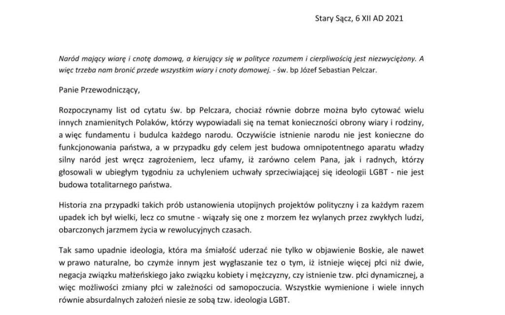 Ruch Narodowy komentuje sprawę uchylenia przez starosądeckich radnych uchwały dotyczącej powstrzymania ideologii gender i LGTB oraz obrony praw katolików.