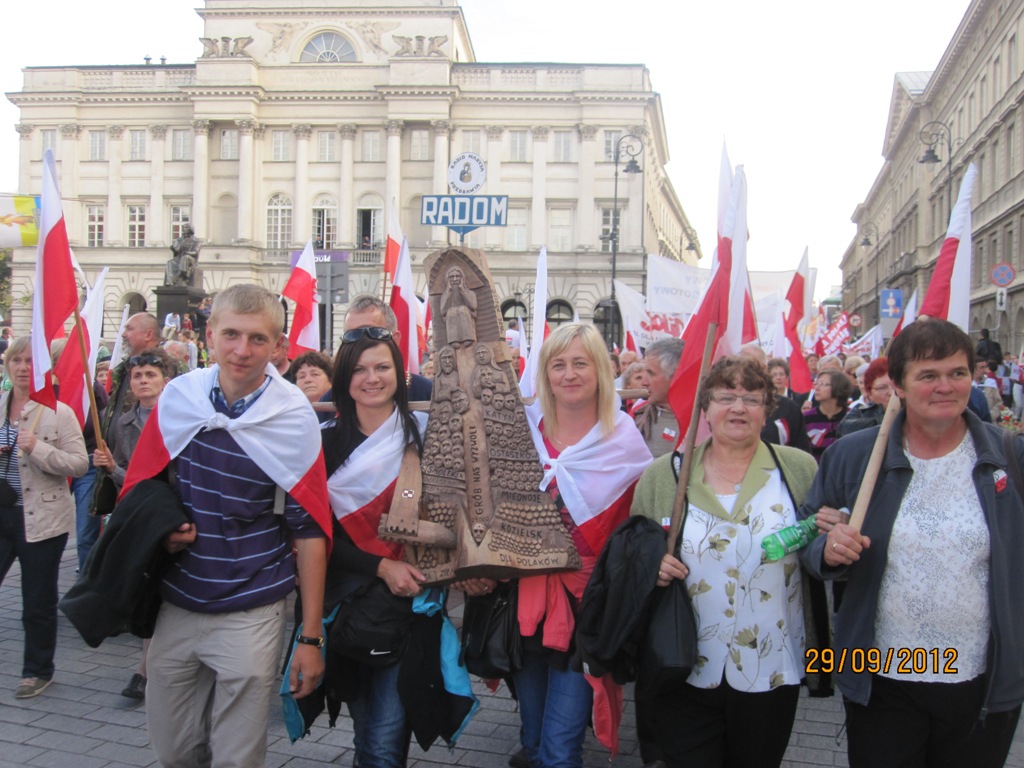 Poniżej fotorelacja z marszu warszawskiego z 2012 roku z rzeźbą Katyńsko-Smoleńską w którym uczestniczyli mieszkańcy Łukowicy , Podegrodzia i Czarnego Potoka