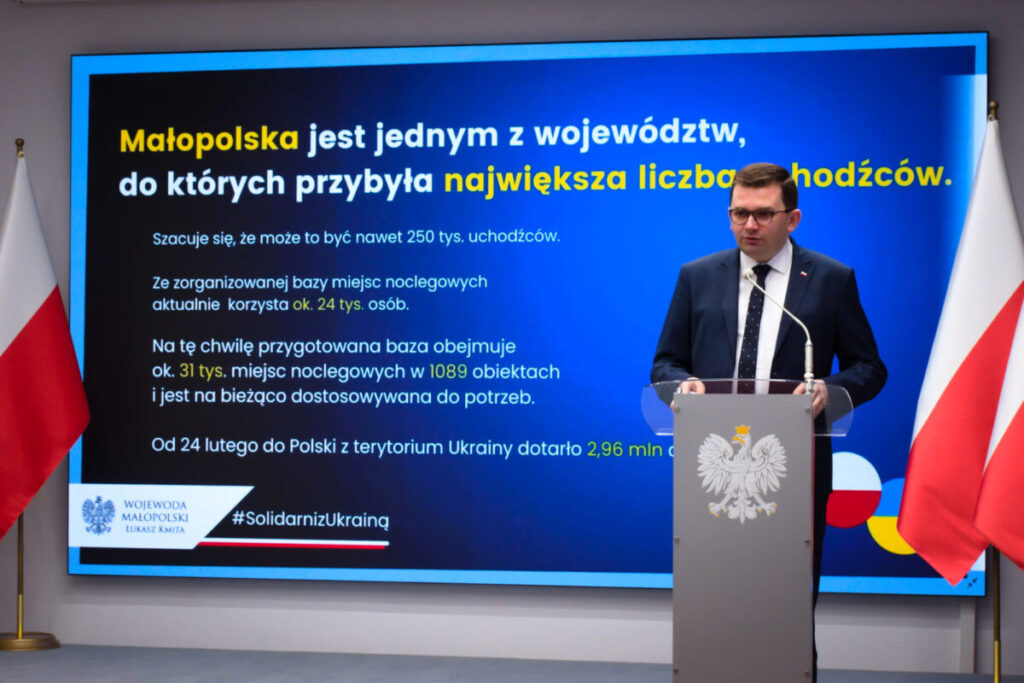 Od pierwszych chwil agresji zbrojnej Rosji na Ukrainę Małopolska stoi po stronie tych, którzy szukają schronienia w naszym regionie. Z pełną odpowiedzialnością mogę dzisiaj powiedzieć, że w Małopolsce współpraca z jednostkami samorządu terytorialnego oraz organizacjami pozarządowymi przebiega wzorowo, a liczba inicjatyw, także tych ponadstandardowych, jest bardzo duża. Rząd Premiera Mateusza Morawieckiego podejmuje wszelkie kroki, aby możliwie najlepiej zaopiekować się uchodźcami wojennymi trafiającymi do Polski. A jak wiemy, do tej pory do naszego kraju z obszaru Ukrainy wjechało niemal 3 mln osób – mówi wojewoda Łukasz Kmita.