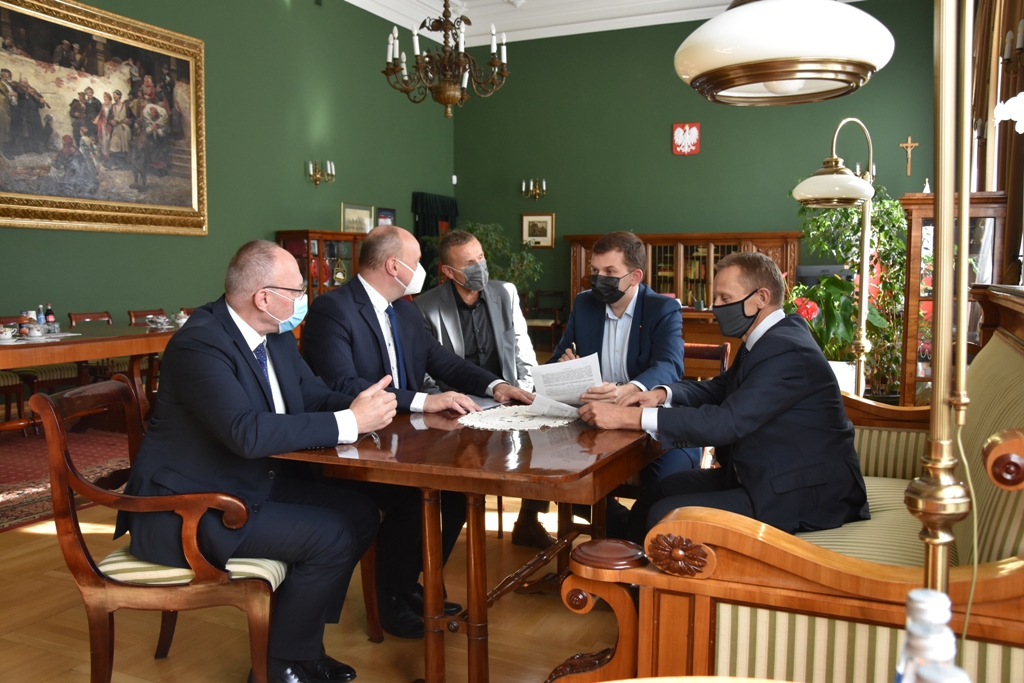 W Małopolskim Urzędzie Wojewódzkim w Krakowie odbyło się spotkanie wojewody małopolskiego Łukasza Kmity i wicewojewodów Zbigniewa Starca oraz Józefa Leśniaka z dyrektorami szpitali w Oświęcimiu Edwardem Piechulkiem i Chrzanowie Arturem Baranowskim. Tematem spotkania było uzgodnienie strategii walki z koronawirusem dla Małopolski Zachodniej w oparciu o współpracę pomiędzy ZOZ w Oświęcimiu i Szpitalem Powiatowym w Chrzanowie. Podczas spotkania podjęto decyzję, że od 26 października placówka w Chrzanowie przeznaczy dla pacjentów z COVID-19 80 łóżek, 2 stanowiska intensywnej terapii i 7 łóżek dla pacjentów z podejrzeniem zakażenia. Z kolei w szpitalu w Oświęcimiu liczba łóżek dla pacjentów z COVID-19 wyniesie 75, a dla pacjentów z podejrzeniem zakażenia będzie przygotowanych 10 izolatek. Co istotne, w oświęcimskim szpitalu znacząco zwiększy się liczba stanowisk intensywnej terapii. Dotychczas było ich 6, a niebawem będzie 20. I to właśnie ten szpital będzie pełnił wiodącą rolę w regionie w zakresie intensywnej terapii, jeśli chodzi o walkę z koronawirusem. – To modelowy przykład współpracy w regionie, w sąsiadujących powiatach – przykład działań uzgodnionych i wypracowanych z dyrektorami szpitali, ordynatorami oddziałów, a zarazem pełnomocnikiem Wojewody Małopolskiego ds. zabezpieczenia intensywnej terapii w województwie małopolskim dr. Wojciechem Serednickim. Małopolska Zachodnia otrzymuje realne wsparcie oparte na ścisłym współdziałaniu dwóch szpitali – mówi wojewoda Łukasz Kmita. Na spotkaniu uzgodniono także, że w przypadku dalszej eskalacji epidemii podjęta zostanie trudna, ale jedynie słuszna decyzja o zwiększeniu o 60 liczby łóżek dla pacjentów z COVID-19 w ZOZ w Oświęcimiu. Będzie się to wiązać z koniecznością przekształcenia oddziału internistycznego w tej placówce. W takiej sytuacji Szpital Powiatowy w Chrzanowie przejmie w całości „niecovidowych” pacjentów internistycznych z regionu. – Wszystkie placówki medyczne tworzą system naczyń połączonych. Doskonale widać to na przykładzie porozumienia pomiędzy szpitalem oświęcimskim i chrzanowskim. Na analogicznej zasadzie współpracować będą kolejne placówki w regionie – dodaje wicewojewoda małopolski Zbigniew Starzec. – Dzięki dobrej współpracy, a także wsparciu organów założycielskich możemy odpowiedzialnie budować system opieki nad pacjentami z COVID-19 w regionie, a zarazem zabezpieczać potrzeby pacjentów „niecovidowych”. Bezpieczeństwo Mieszkańców jest naszym wspólnym celem i priorytetem – podsumowują dyrektorzy Edward Piechulek i Artur Baranowski.