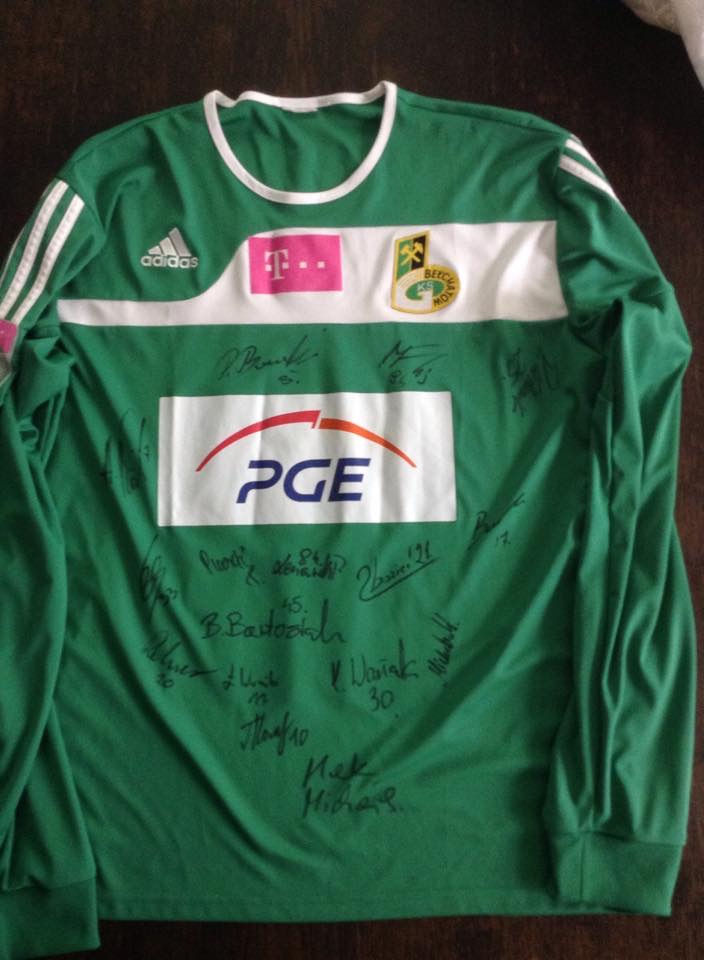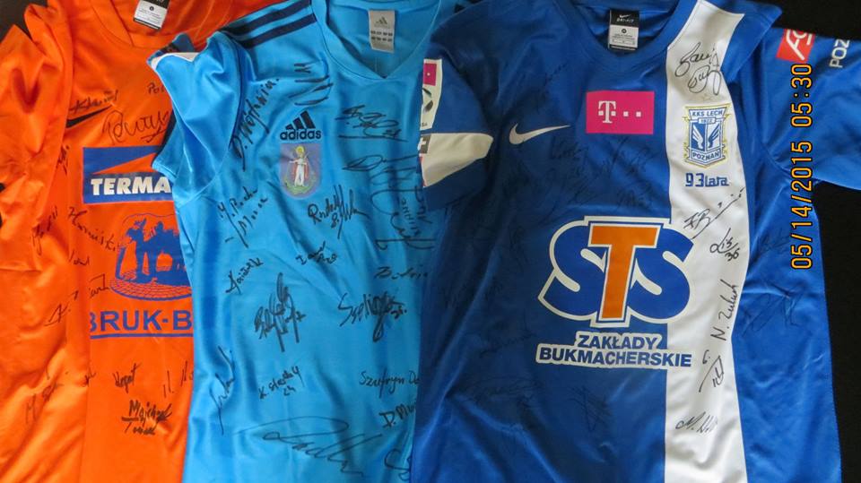 -Energa AZS Koszalin-aktualne brązowe medalistki mistrzostw Polski piłkarek ręcznych.-koszulki z podpisami zawodników: Lech Poznań, Legia Warszawa, Wisła Kraków, Pogoń Szczecin, Arka Gdynia, Śląsk Wrocław, Lechia Gdańsk, Notthingam Forest,GKS Bełchatów, Sandecja Nowy Sącz, Termalika Nieciesza.
