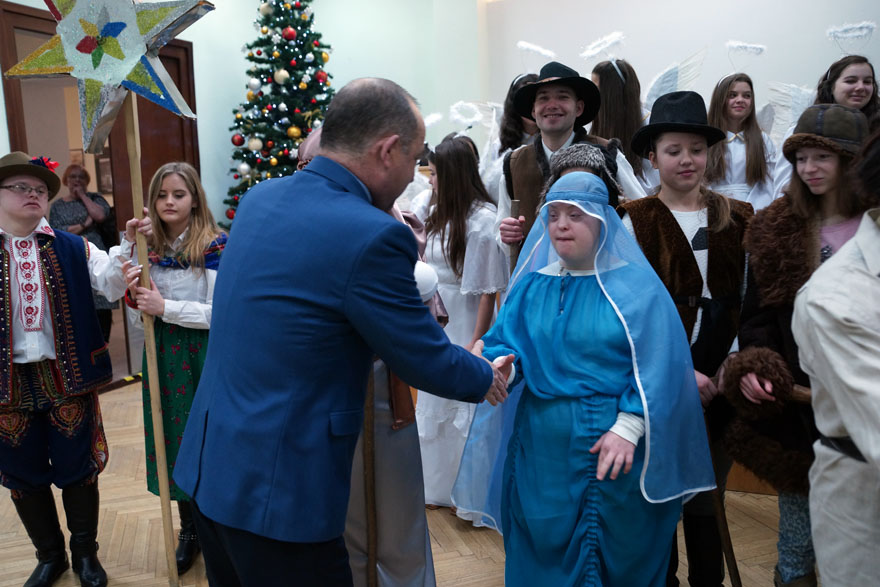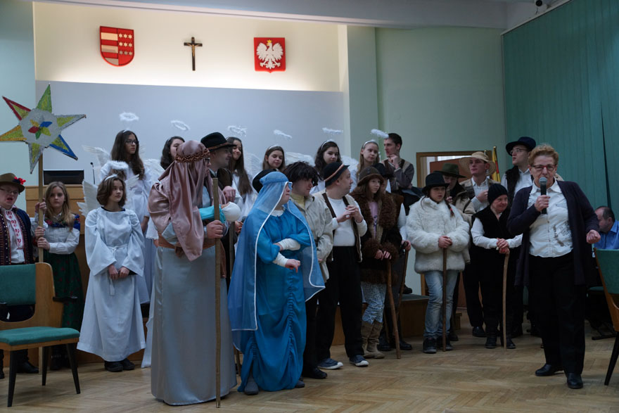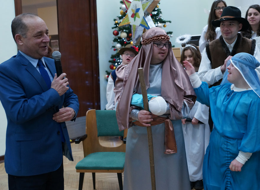 Integracyjny teatr muzyczny, działający przy Stowarzyszeniu Na Rzecz Osób Niepełnosprawnych Gniazdo w Starym Sączu wystąpił dziś przed starostami i urzędnikami w Starostwie Powiatowym. Młodzi artyści brawurowo zagrali przedstawienie jasełkowe, które zostało nagrodzone gromkimi brawami przez wzruszoną publiczność.