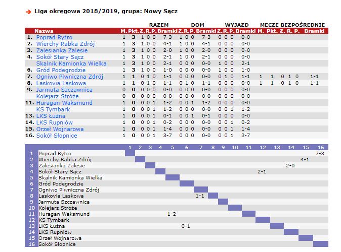12 sierpnia w inauguracyjnym meczu nowego sezonu piłkarskiego 2018/2019 Ligi Okręgowej MKS Sokół wygrał na własnym stadionie z KS Tymbark 2:1 zajmując -po pierwszej kolejce -4 miejsce w tabeli.