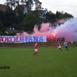 Kibice dali o sobie znać już w pierwszej połowie. Najpierw rozwinęli ogromną flagę z napisem Sokół Fans, a po chwili odpalili race i świece dymne. Fani dopingowali kulturalnie swój zespół przez całe spotkanie. I to dało prawdziwego „kopa” piłkarzom Sokoła. Spotkanie zakończyło się wynikiem 2:0.