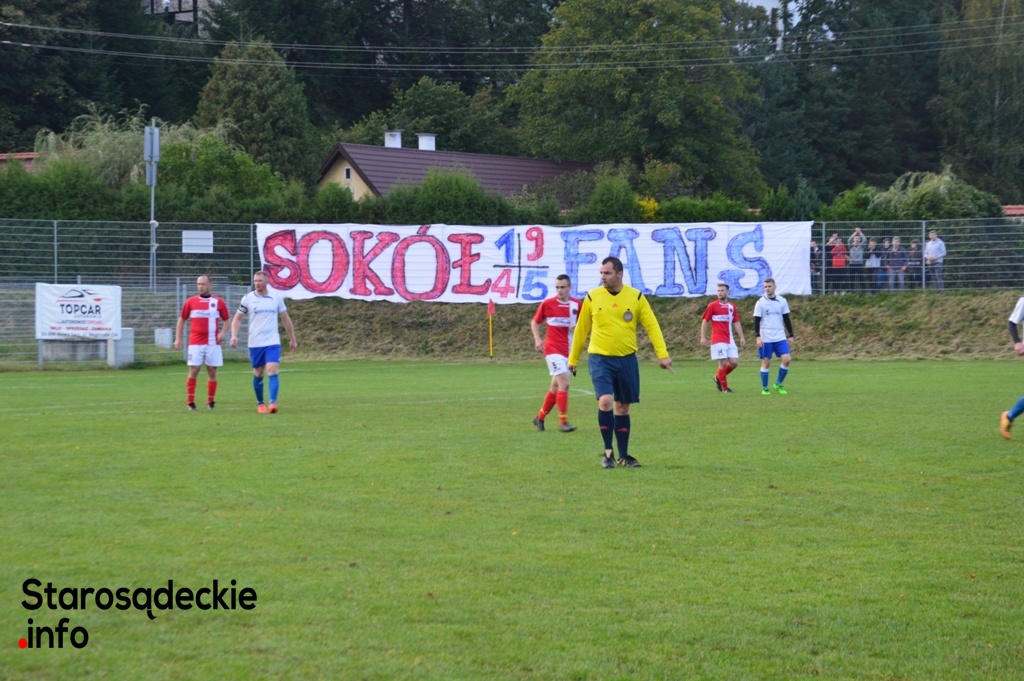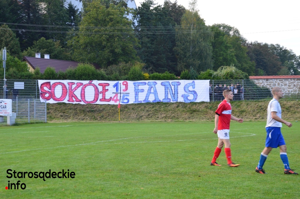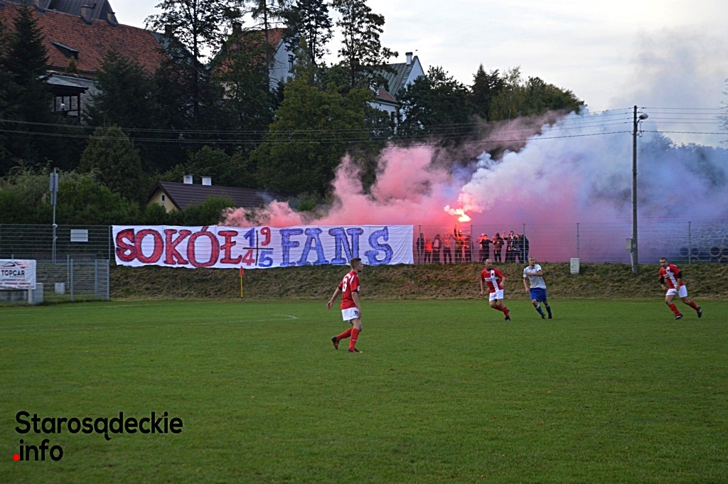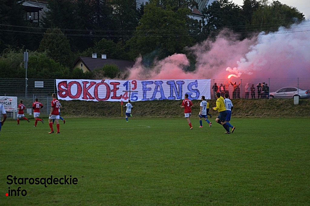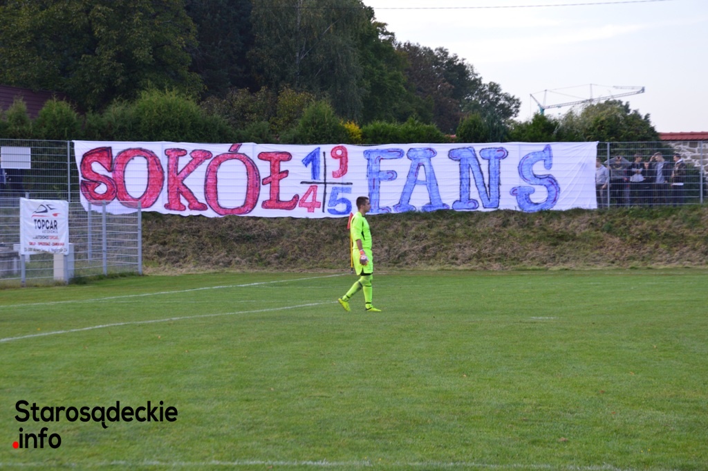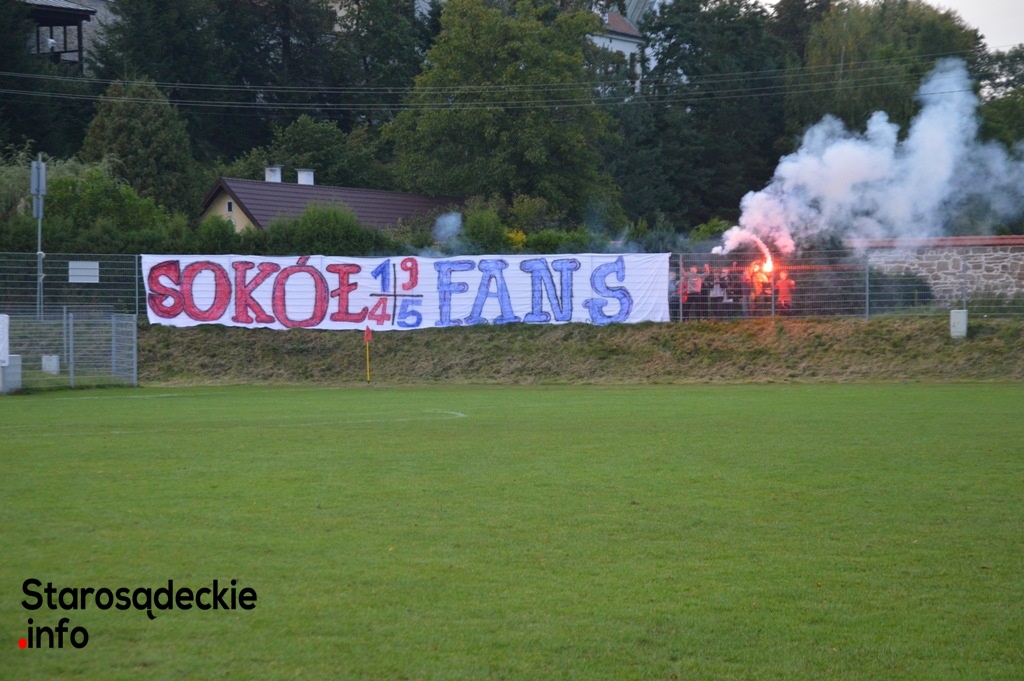 Kibice dali o sobie znać już w pierwszej połowie. Najpierw rozwinęli ogromną flagę z napisem Sokół Fans, a po chwili odpalili race i świece dymne. Fani dopingowali kulturalnie swój zespół przez całe spotkanie. I to dało prawdziwego „kopa” piłkarzom Sokoła. Spotkanie zakończyło się wynikiem 2:0.