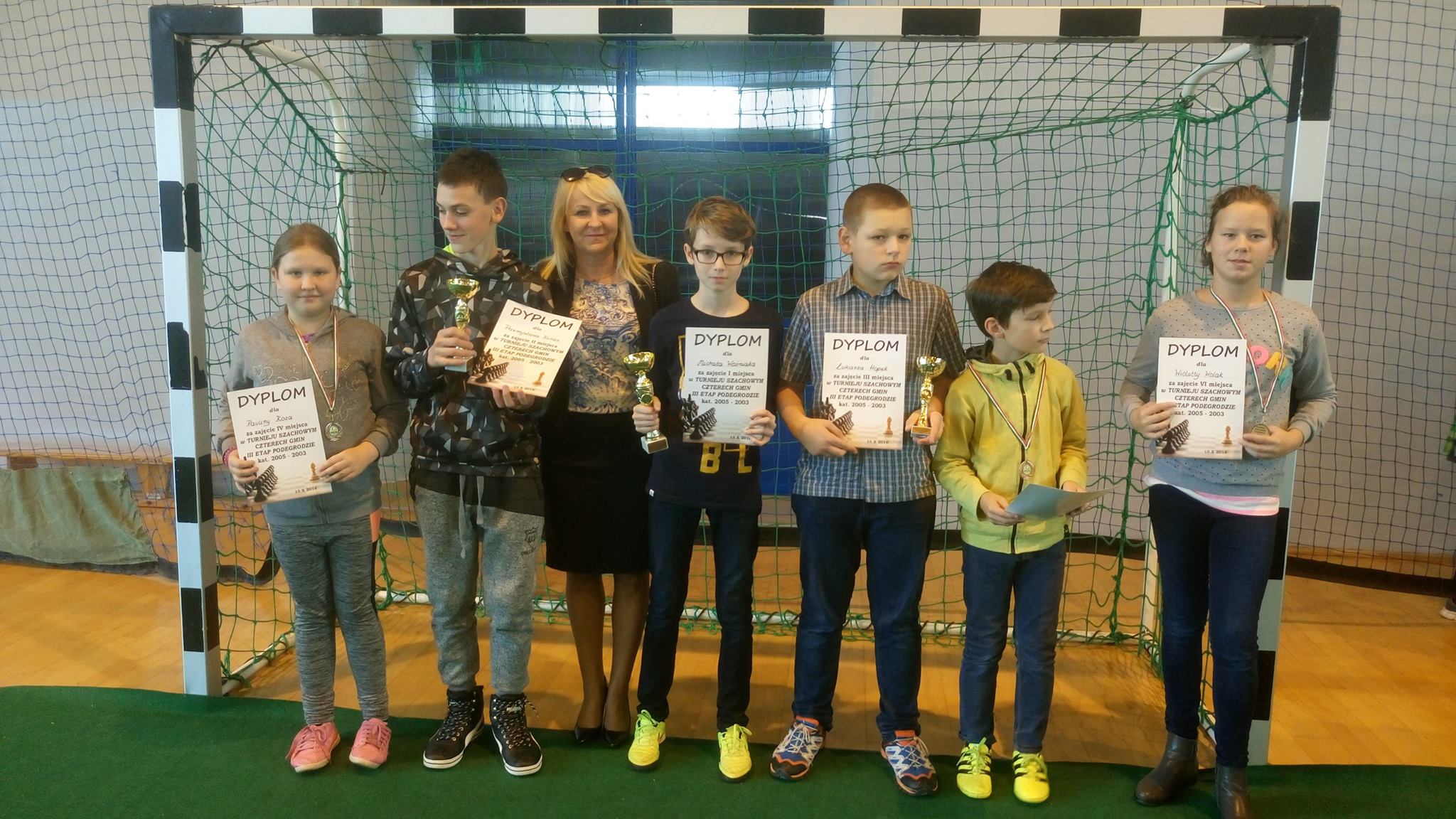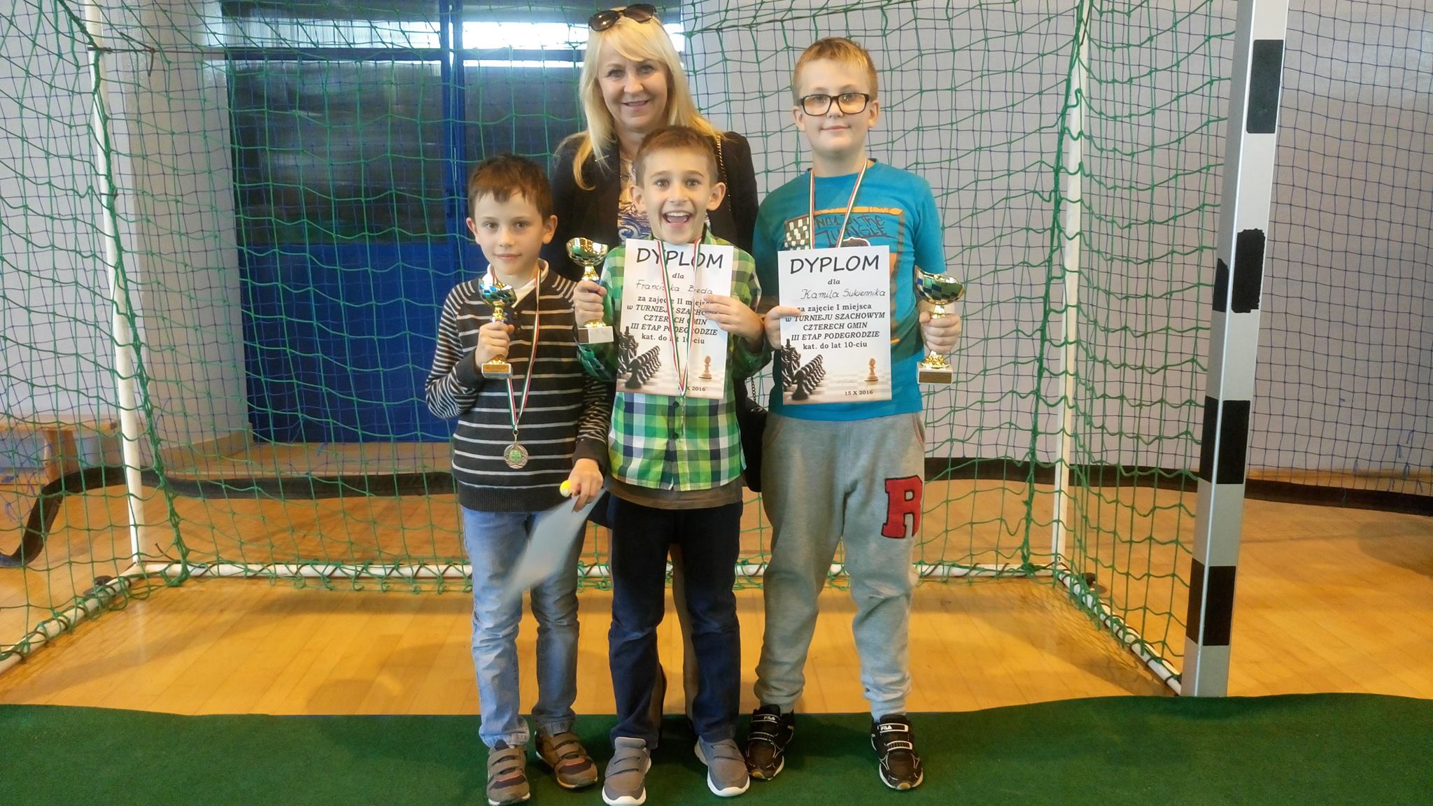 Po zakończonych zmaganiach przy szachownicach nadszedł czas na uroczyste wręczenie nagród, którego dokonała p. Wójt Małgorzata Gromala. Najlepsi w każdej kategorii otrzymali pamiątkowe dyplomy oraz puchary. Wszyscy zawodnicy w najmłodszej grupie dostali pamiątkowe medale. Również wśród najmłodszych zostały rozlosowane nagrody – upominki ufundowane przez sponsorów: Adam Pasiut, Łukasz Jeleński, Barbara i Bogdan Buczek. Pani Wójt wręczyła również nagrody dla najlepszych zawodników w każdej kategorii z terenu gminy Podegrodzie.