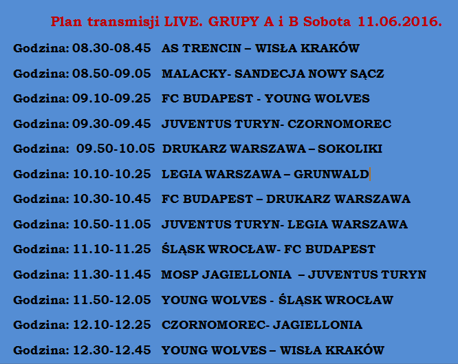 W dniach 11-12 czerwca 2016 roku na obiektach sportowych MKS Sokół w Starym Sączu odbędzie się szósta edycja jednego z najlepszych w kraju turniejów piłki nożnej skierowanych dla dziesięciolatków.Znamy już harmonogram transmisji meczy LIVE!!!