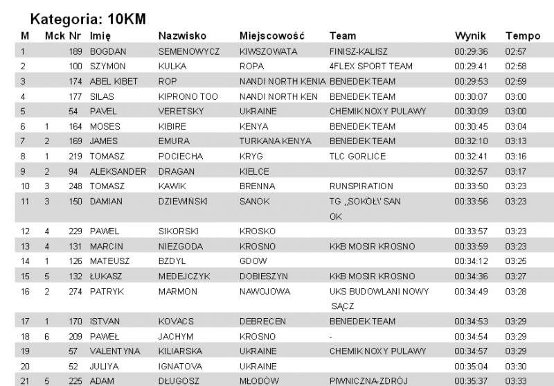 Już wiemy, że w zawodach triumfował Ukrainiec Bogdan Semenowicz z czasem 29:36, tuż za nim znaleźli się Szymon Kolka z Ropy (29:41) i Kenijczyk Abel Kibet Rop (29:53).