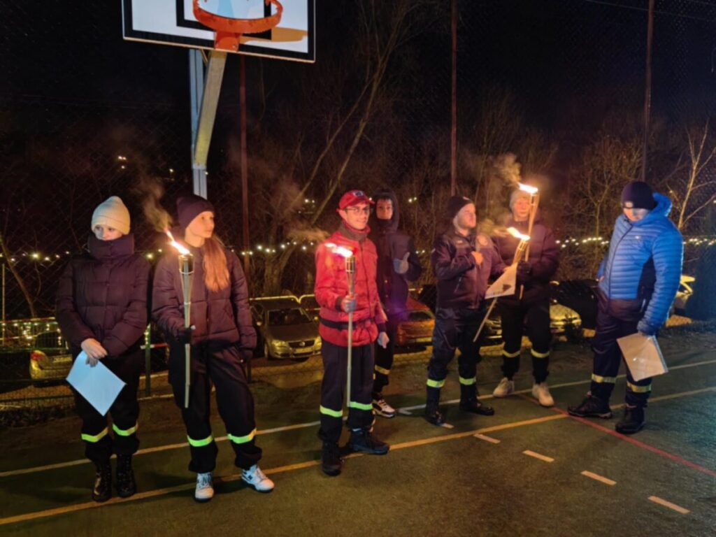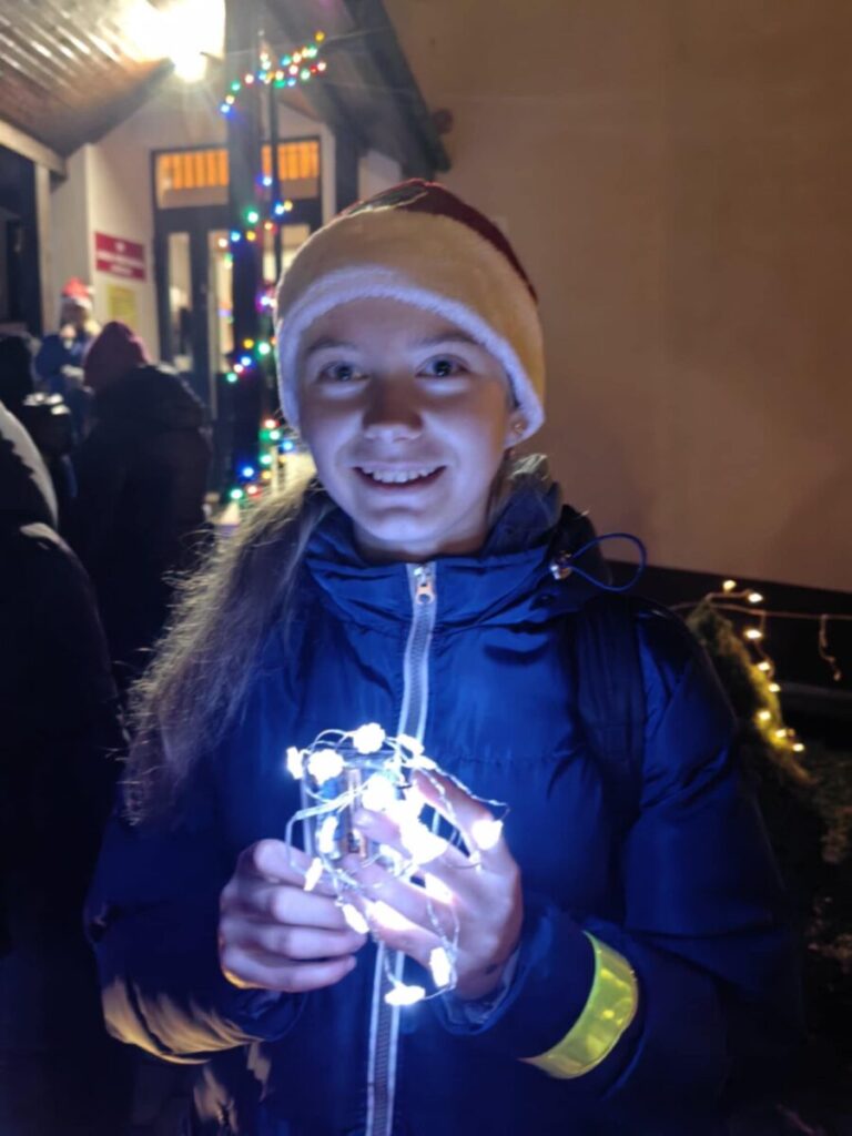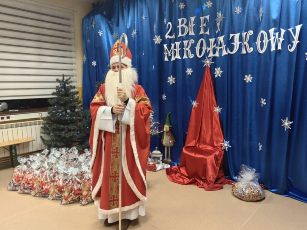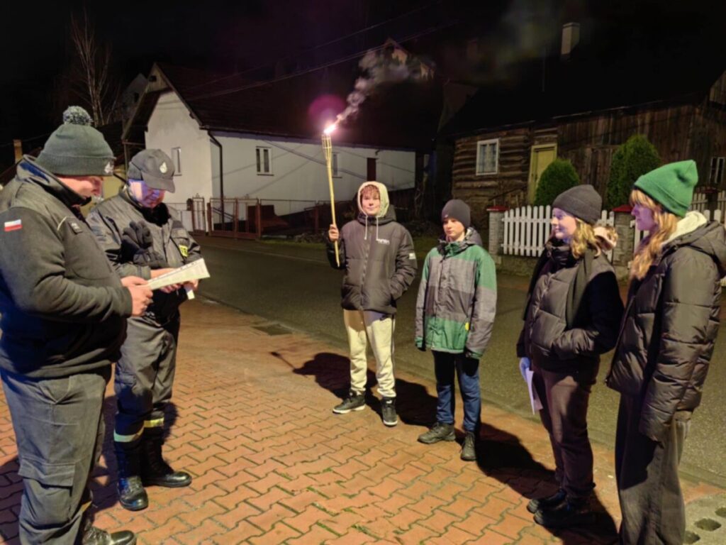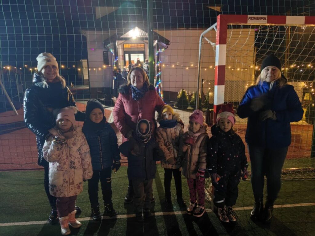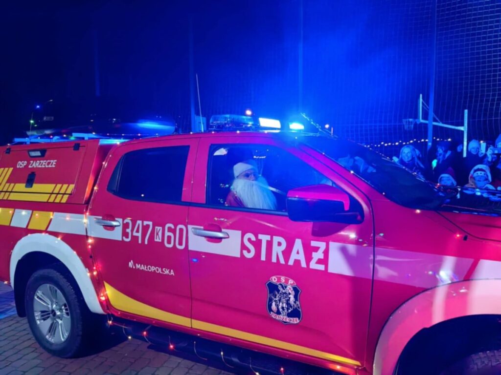 Zgodnie z wyznaczoną trasą realizowali przygotowane zadania, a po ich wykonaniu wszyscy wrócili do szkoły na gorący posiłek. Następnie w dwóch grupach młodszych i starszych dzieci oglądali filmy świąteczne, aż do momentu, gdy rozległ się dźwięk syreny strażackiej i wszyscy z ciekawością wybiegli na podwórko szkolne. A tam na niebie rozbłysły fajerwerki i na plac szkolny wjechał samochód strażacki, a w nim… poszukiwany św. Mikołaj, który w asyście dzieci przeszedł do budynku szkoły, w którym powitano go piosenkami.