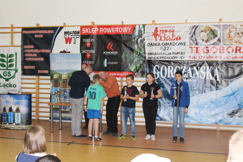 Po zakończeniu zmagań przy szachownicach nastąpiła ceremonia zakończenia, którą otworzył Wójt Gminy Łącko Jan Dziedzina. Podsumowanie poprowadził gospodarz wydarzenia Witold Majerski a pamiątkowe puchary i medale wręczyli Bogdan Łuczkowski i Stanisław Gamoń.