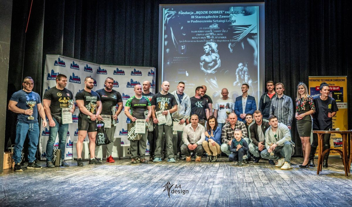 III edycja starosądeckich zawodów siłowych już za nami. W tym roku zawody odbyły się pod honorowym patronatem Burmistrza Starego Sącza Jacka Lelka. W zawodach wzięło udział 22 uczestników, w tym 2 kobiety. Gościem specjalnym był Sekretarz Województwa Małopolskiego Pan Wojciech Piech, który otrzymał statuetkę Przyjaciela Fundacji „Będzie Dobrze”.