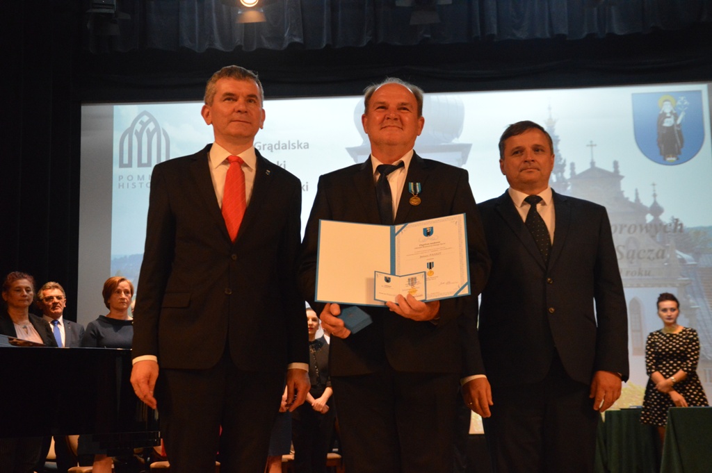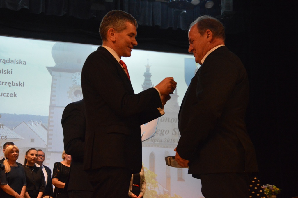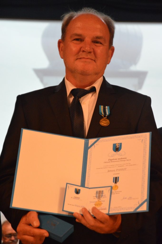 Janusz Pasiut, trener i prezes piłki siatkowej w Międzyszkolnym Uczniowskim Klubie Sportowym „Poprad” działającym przy Szkole Podstawowej nr 2 im. Juliusza Słowackiego w Starym Sączu odebrał z rąk burmistrza Jacka Lelka i przewodniczącego Rady Miejskiej Andrzeja Stawiarskiego Honorową Odznakę Starego Sącza. Uroczysta sesja odbyła się w Kinie Sokół 20 lipca 2019 r.