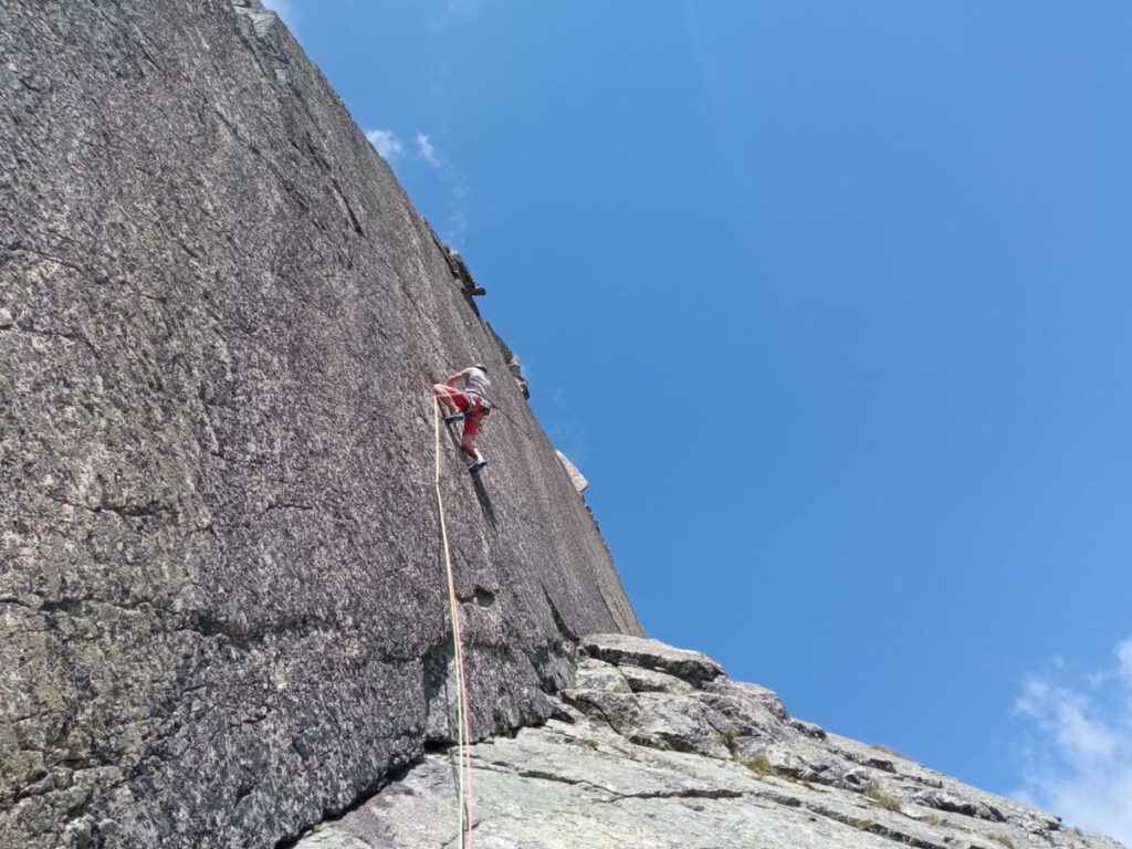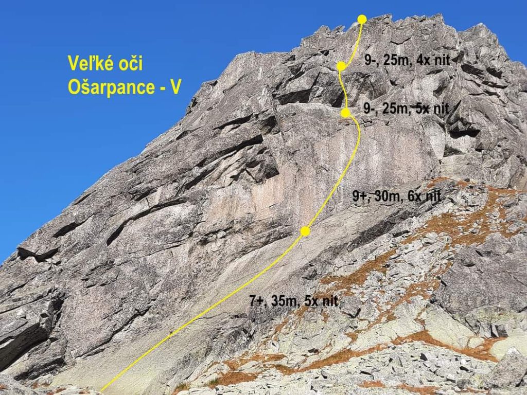 Vel’ké oči” (9+) polecam każdemu, kto lubi się technicznie wspinać –mówi Jasiek Gurba – W ten weekend udało mi się zrobić pierwsze powtórzenie tej drogi. Oferuje dużo płytowego wspinania, ale nie tylko. Trzeci wyciąg to przewieszona ryska z bulderowym wyjściem. Na pionowej płycie udało mi się nawet zhaczyć piętę, co wydaje mi się rzadkie jak na granitowe wspinanie.