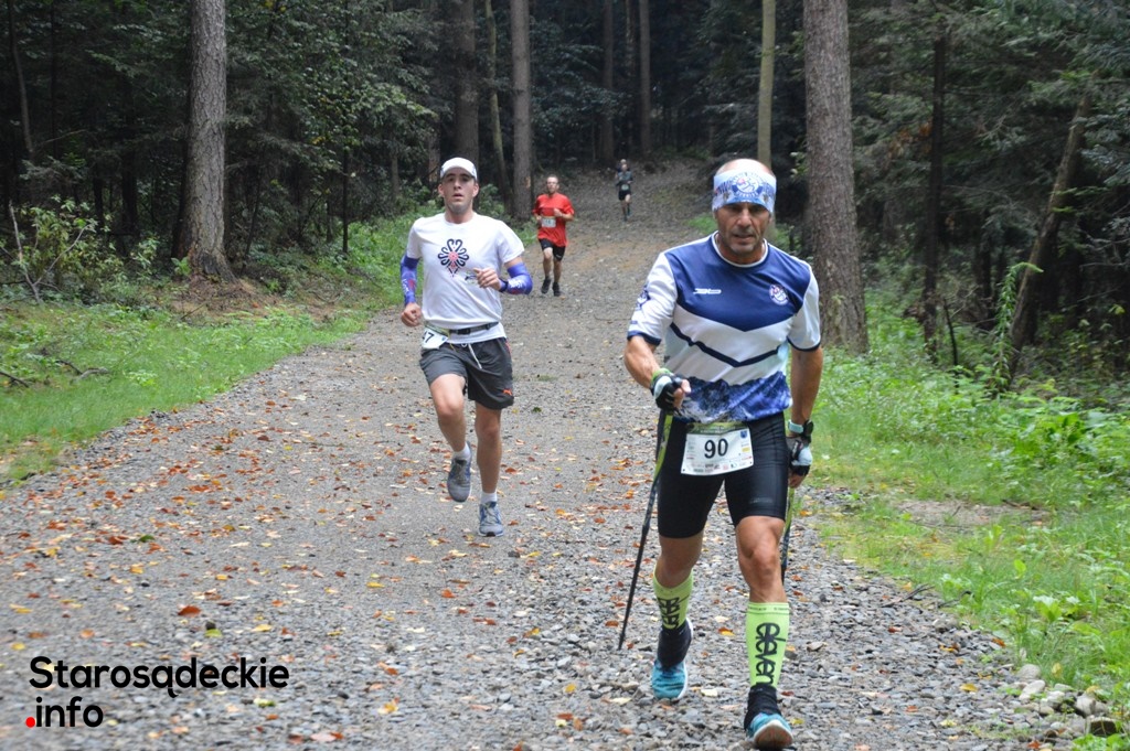 Pierwsza trasa w stylu anglosaskim o długości około 16 km wiedzie po urokliwych terenach Góry Miejskiej oraz lasach Nadleśnictwa Starego Sącza w kierunku Gołkowic . Po około 8 km przy szlabanie będzie umiejscowiony punkt kontrolny z napojami. Następnie zawodnicy wracają tą samą trasą do mety, jednakże w tym roku zmodyfikowaliśmy ostatnie 3 km trasy. Najszybciej w ubiegłym roku trasę pokonał Jan Wydra z (Klub MOK Mszana Dolna) z czasem na macie 01:10:58.Wsród kobiet pierwsze miejsce zajęła Anna Bodziony z Niskowej (Start Nowy Sącz /Szost team/Visegrad Maraton Rytro ) czas 01:26:00.