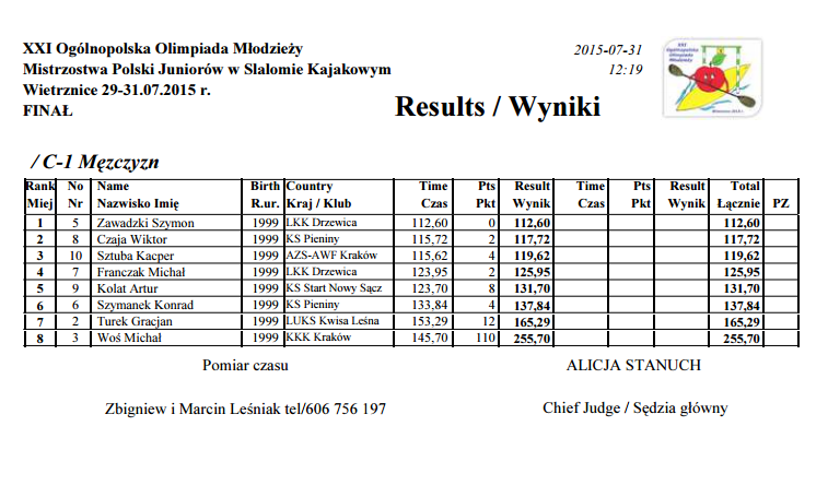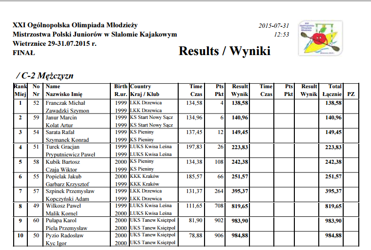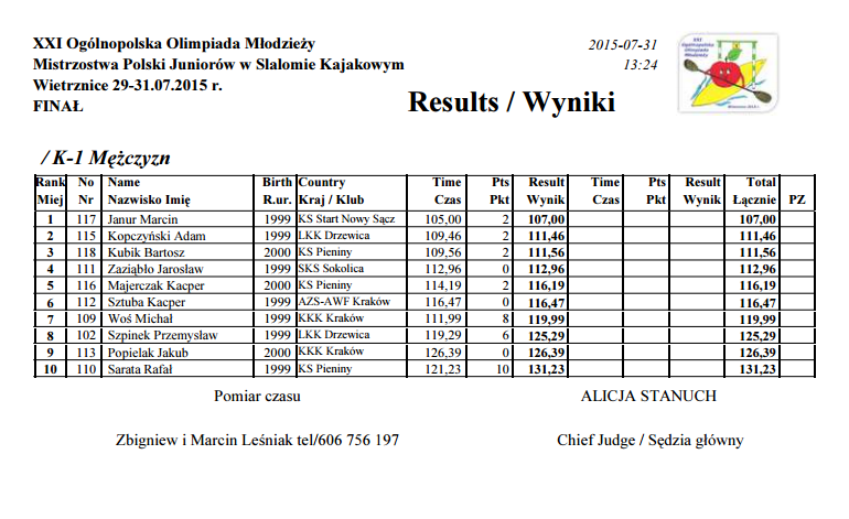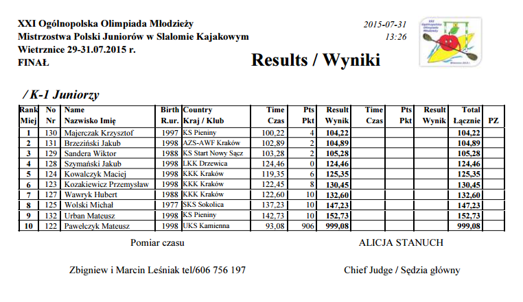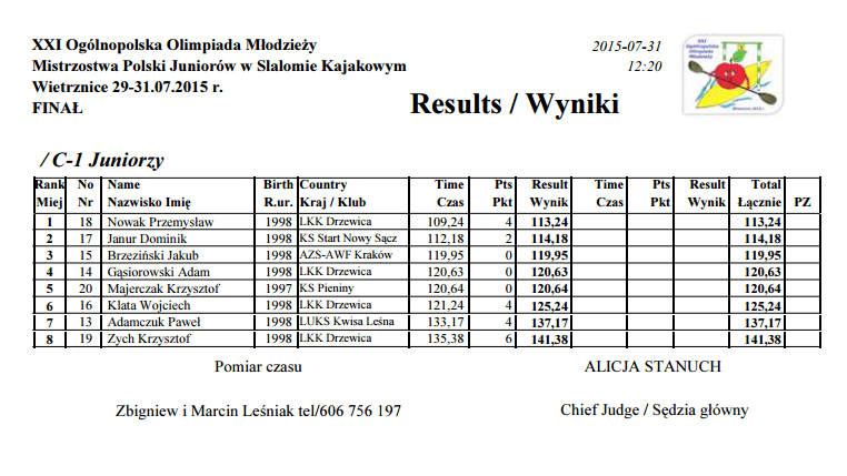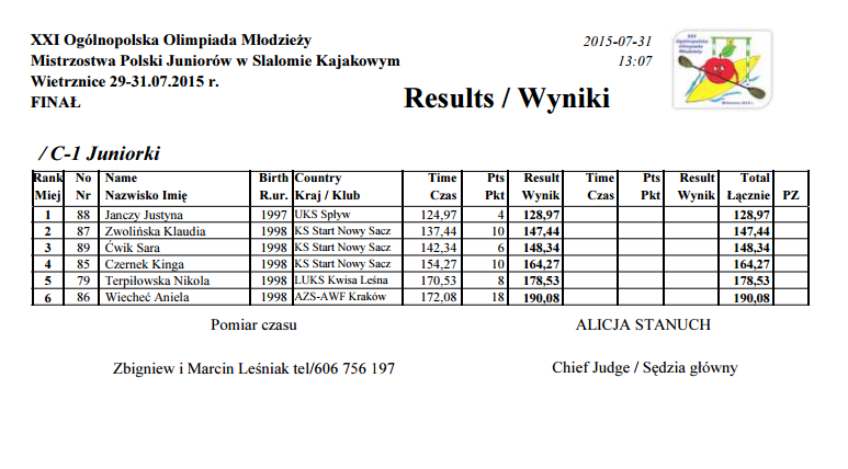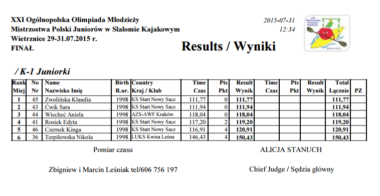 Starosądeckie.info było patronem medialnym XXI Ogólnopolskiej Olimpiady Młodzieży i Mistrzostw Polski Juniorów w slalomie Kajakowym.