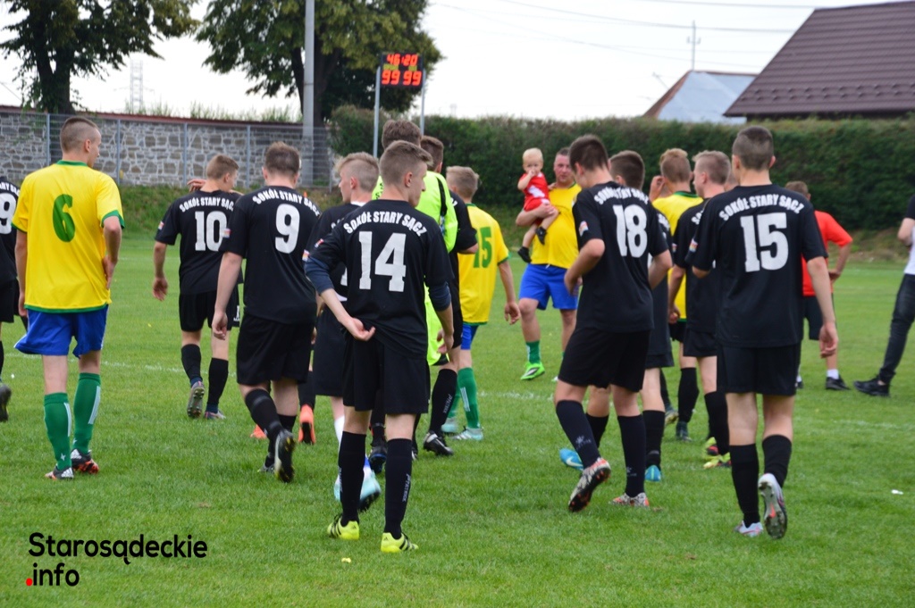 Na ten mecz czekał piłkarski Stary Sącz. W ramach ostatniej kolejki sądeckiej A klasy MKS Sokół miał podjąć na stadionie przy Bandurskiego Łosoś Łososinę Dolną. Na to spotkanie specjalnie mobilizowali się kibice. Mecz się jednak nie odbył. Drużyna Łosoś Łososina Dolna nie przyjechała . Nie znamy przyczyn tej decyzji, ale nie przeszkodziło to piłkarzom Sokoła świętować awansu do Okręgówki. Stadion Sokoła wypełniony był kibicami, dlatego piłkarze nie zawiedli i postanowili rozegrać mecz przyjaźni między juniorami a seniorami. Piękna oprawa meczu i najmłodsze sokoliki wyprowadzające piłkarzy. Wynik meczu 2:2 a potem w ruch poszły…szampany!